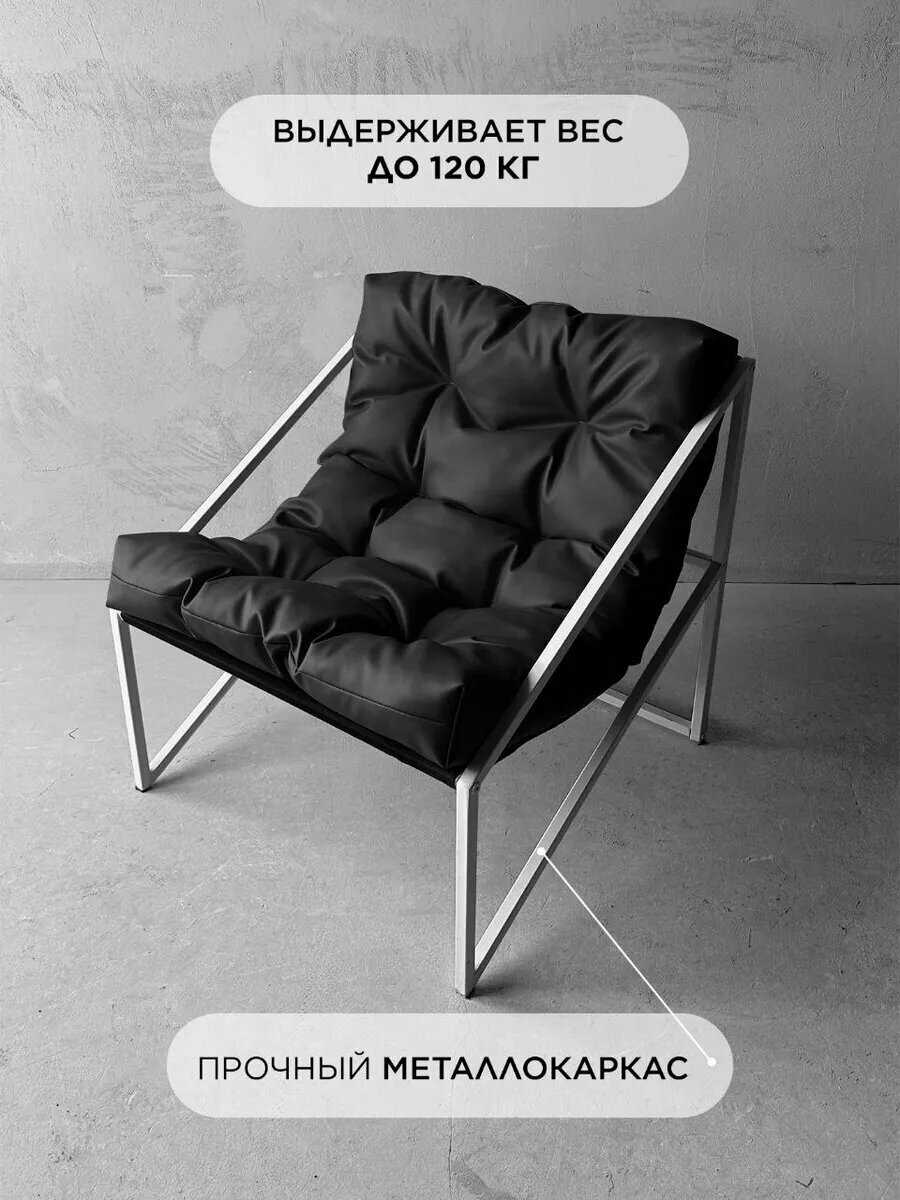 Купить Кресло мягкое удобное для отдыха, уличное, на балкон, на веранду, в стиле лофт, минимализм, Слэш + кожзам черный