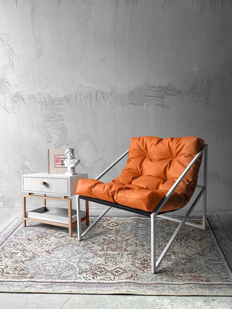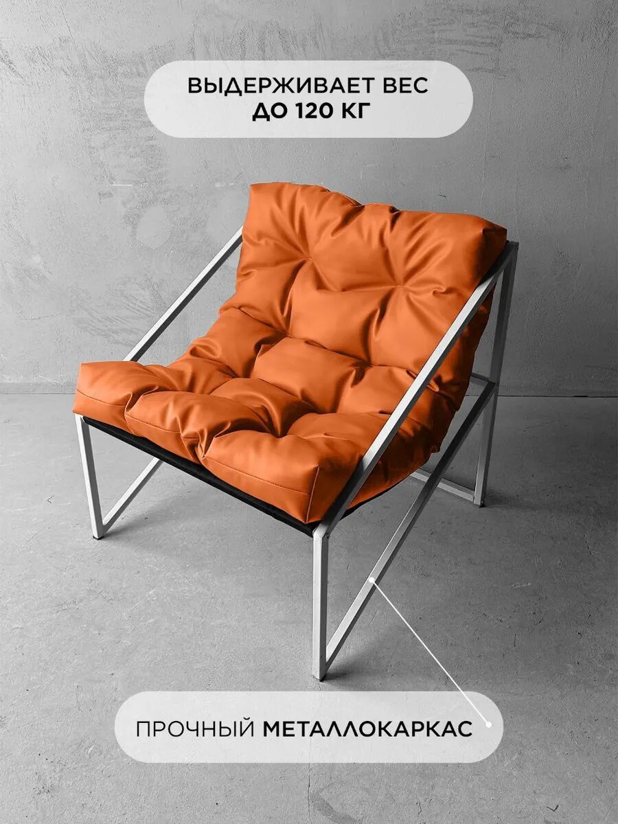 СохранитьКресло мягкое удобное для отдыха, уличное, на балкон, на веранду, в стиле лофт, минимализм, Слэш + кожзам рыжий интересное: