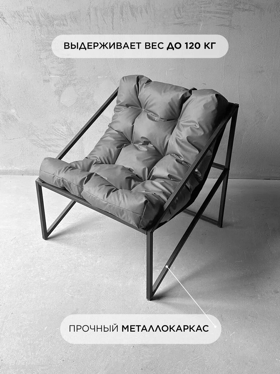 Кресло мягкое удобное для отдыха, уличное, на балкон, веранду, в стиле лофт, минимализм, Слэш + Кожзам серый