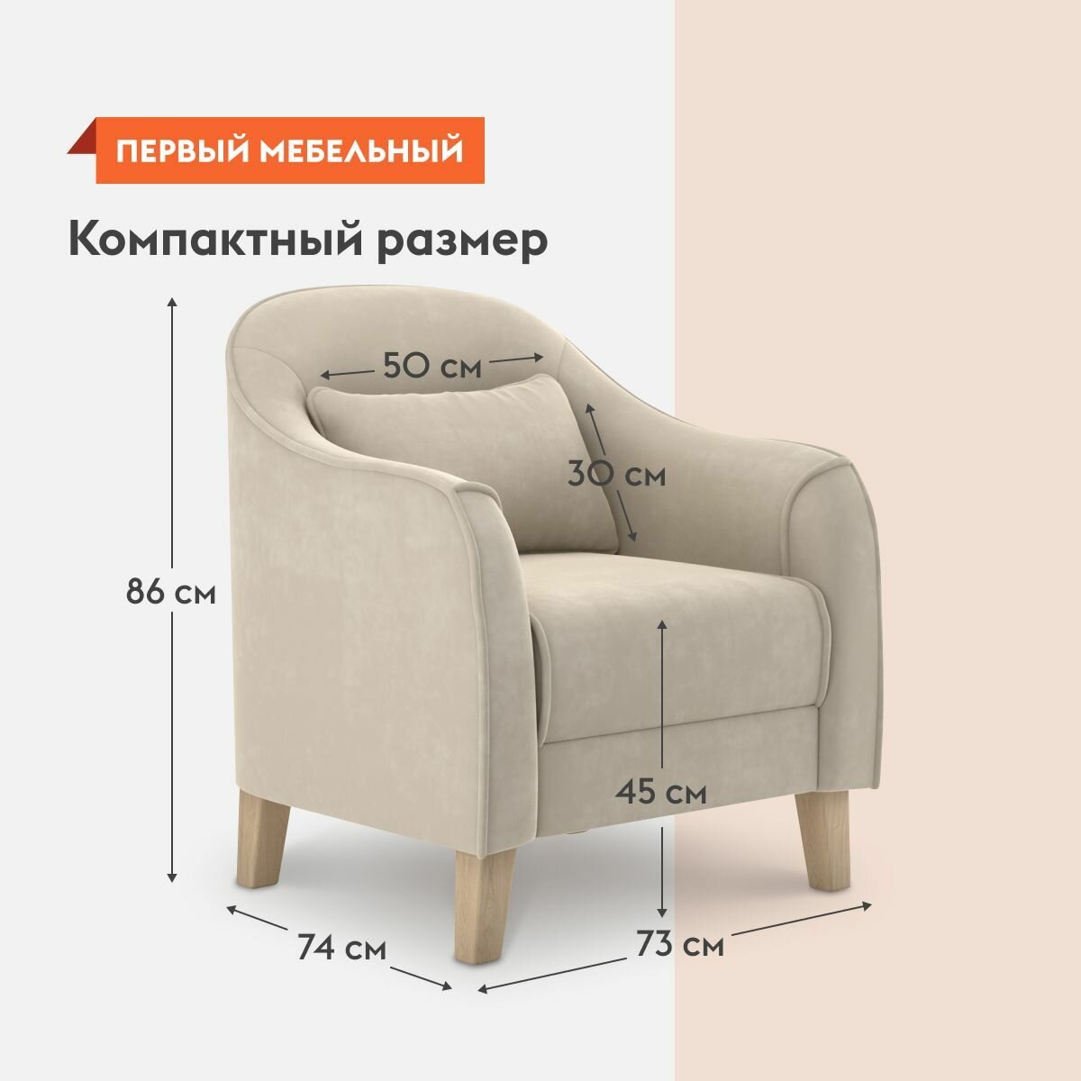 СохранитьКресло мягкое Эдита для отдыха дома с декоративной подушкой, высокие ножки, 73х74х86 см, Бежевый, велюр интересное: