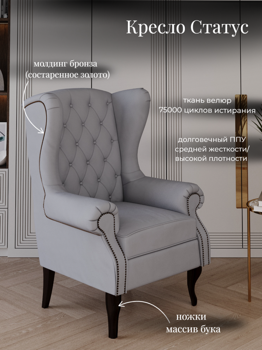 Кресло Статус 3, 1 шт, цвет: серый/ножки венге интересное: