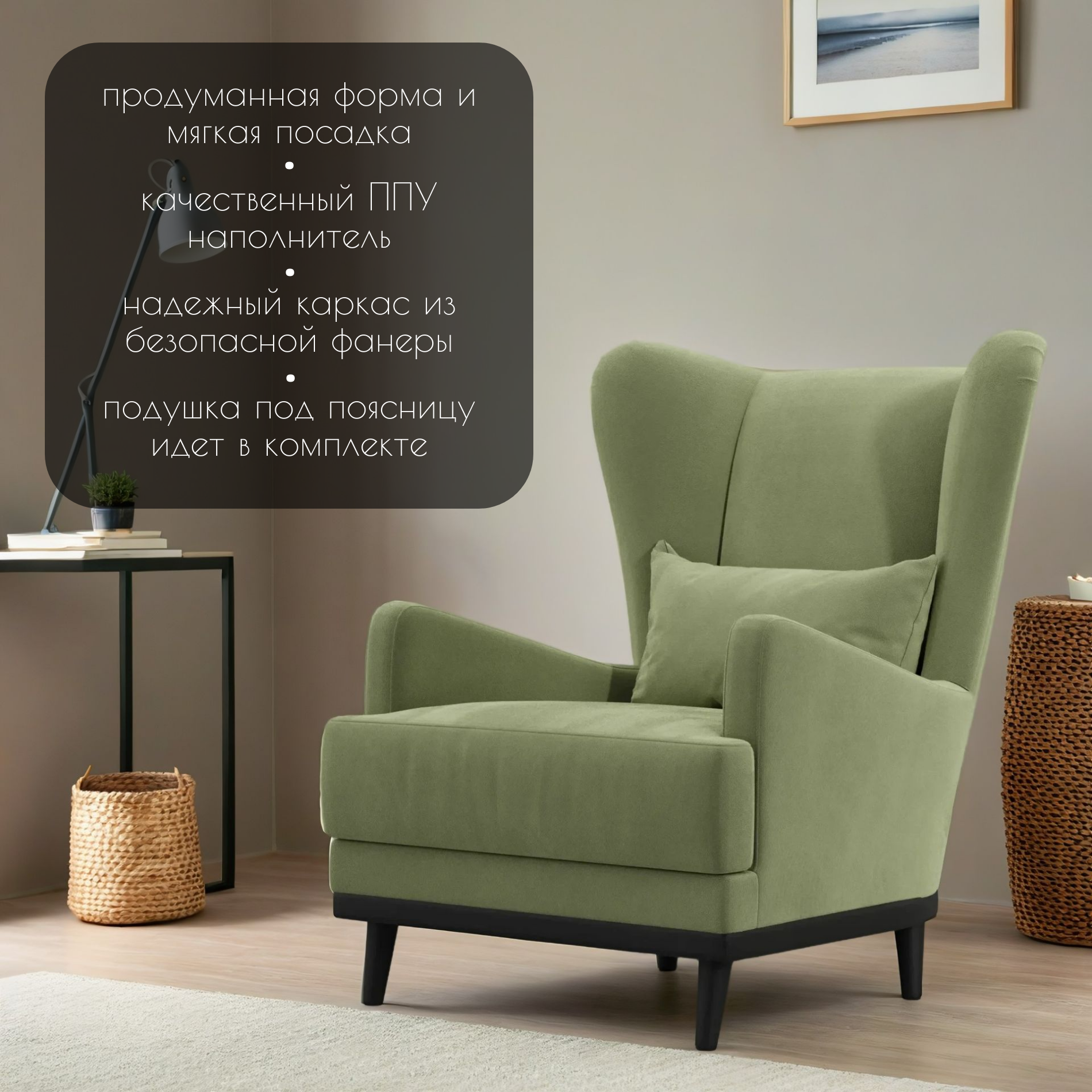 СохранитьКресло Сопрано мягкое, для отдыха и чтения, велюр, цвет: Оливковый интересное: