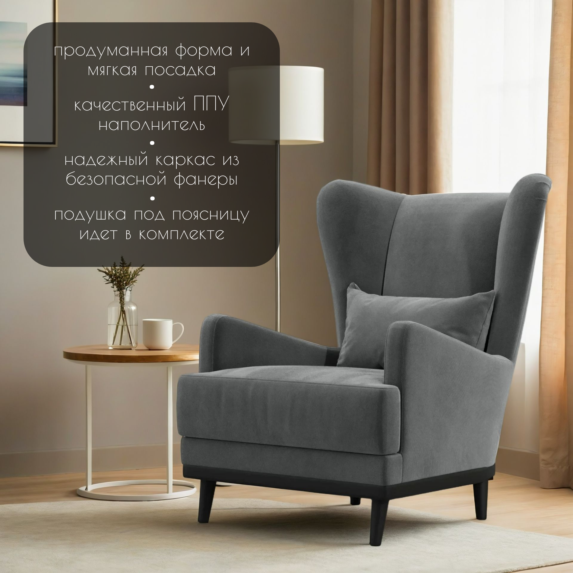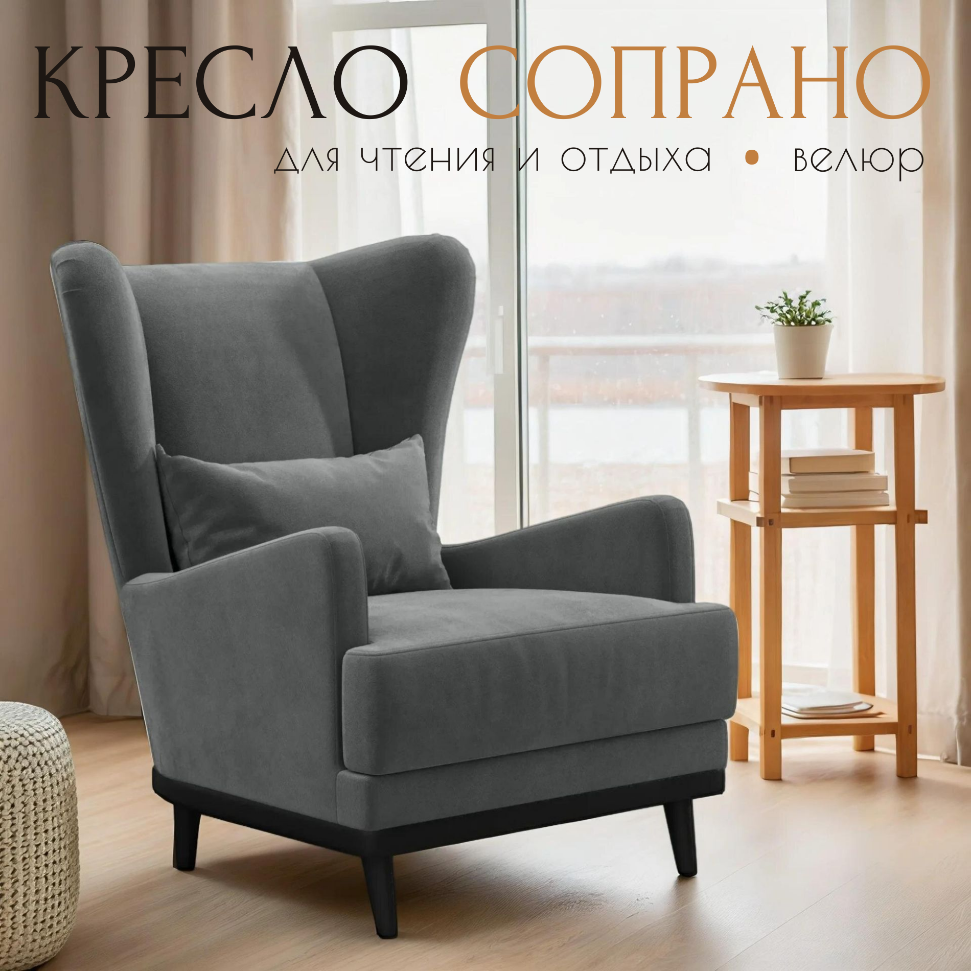 Кресло Сопрано мягкое, для отдыха и чтения, велюр, цвет: Тёмно-серый
