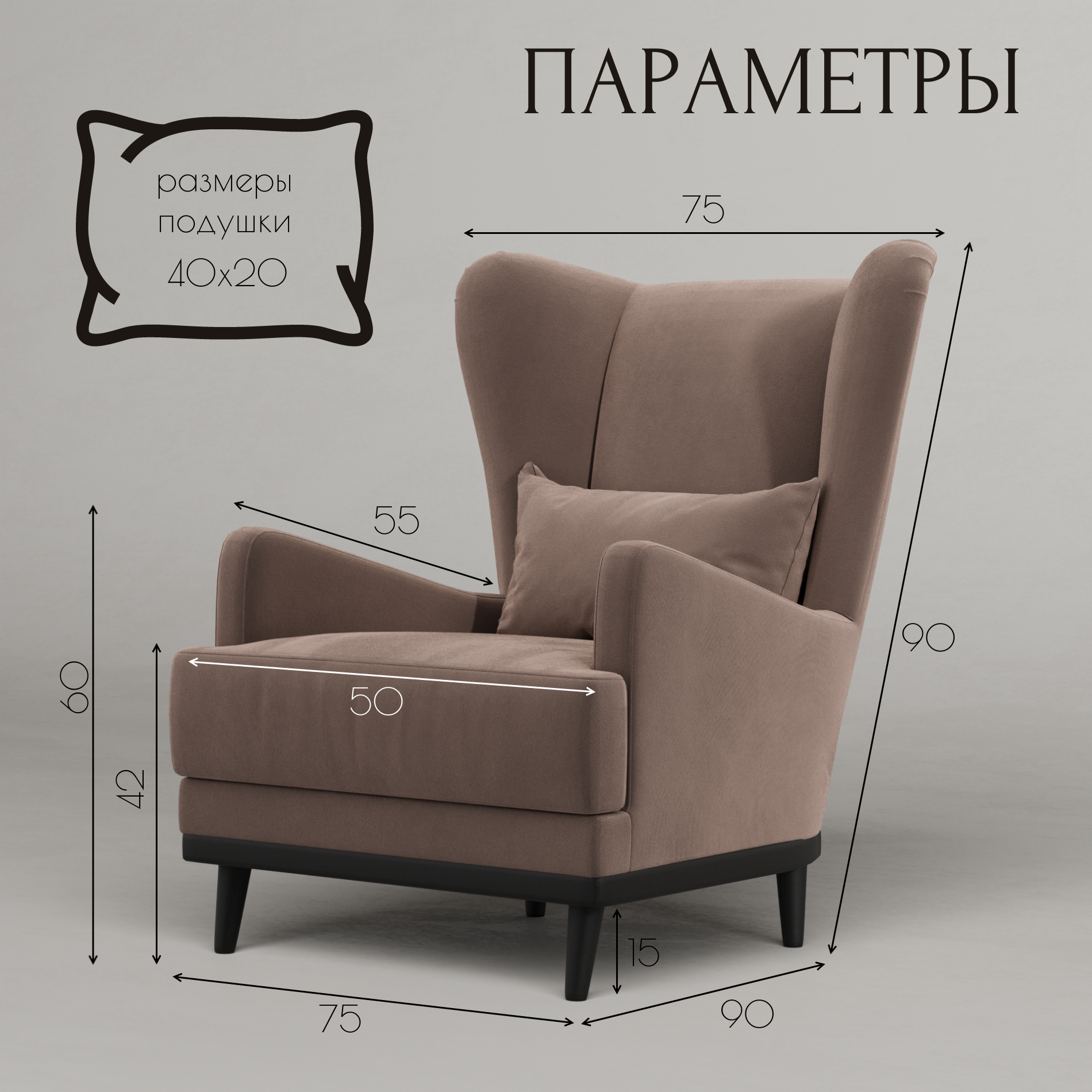 Кресло Сопрано мягкое, для отдыха и чтения, велюр, цвет: Тёмно-коричневый