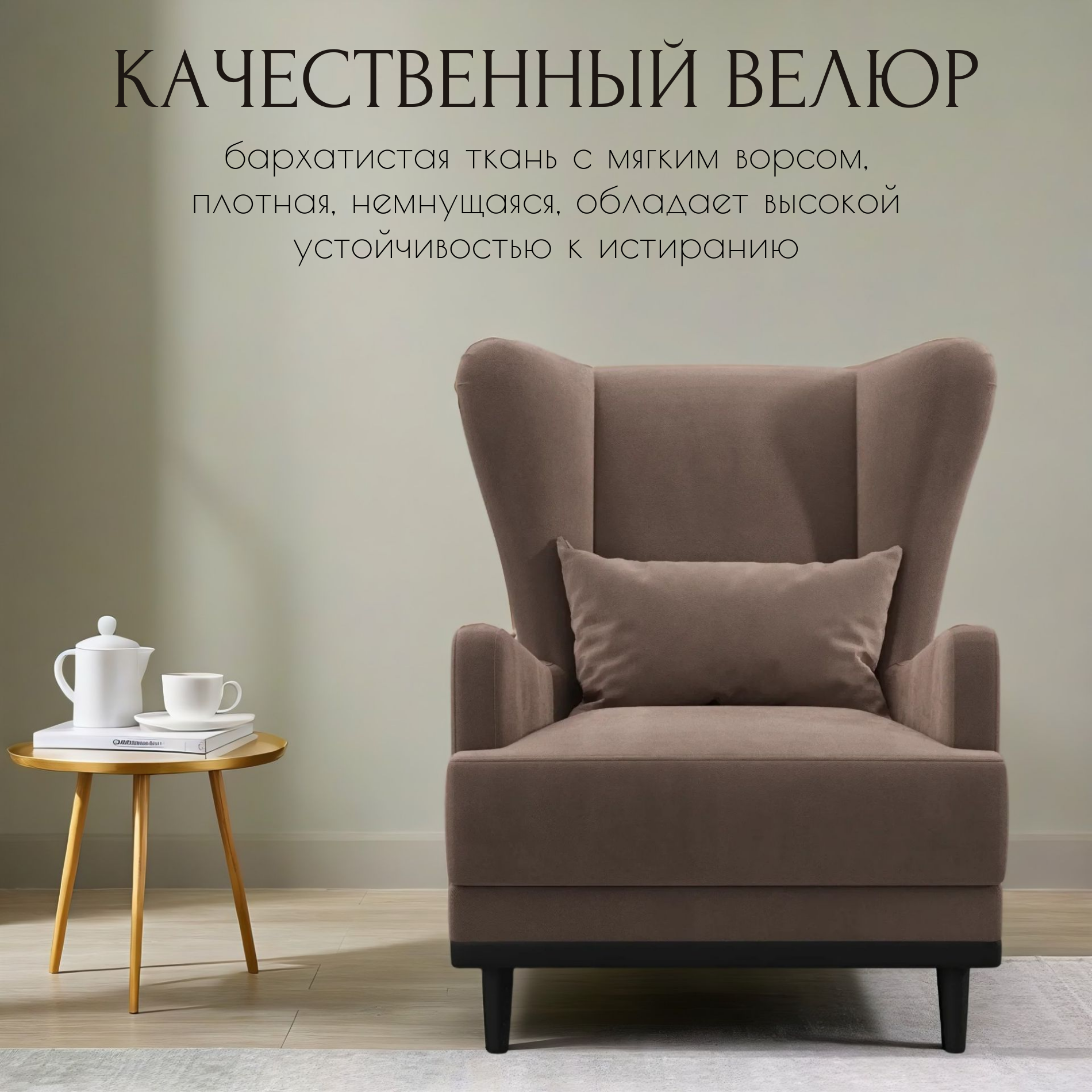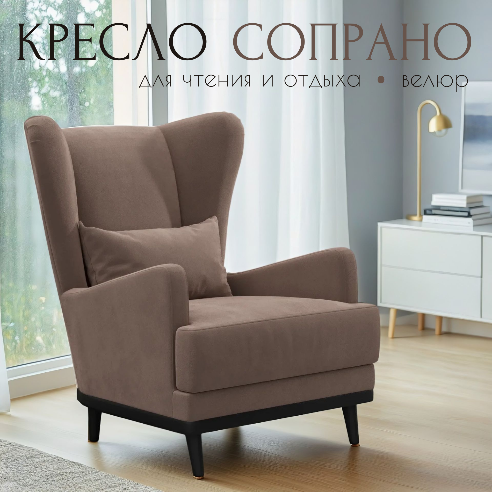 Кресло Сопрано мягкое, для отдыха и чтения, велюр, цвет: Коричневый