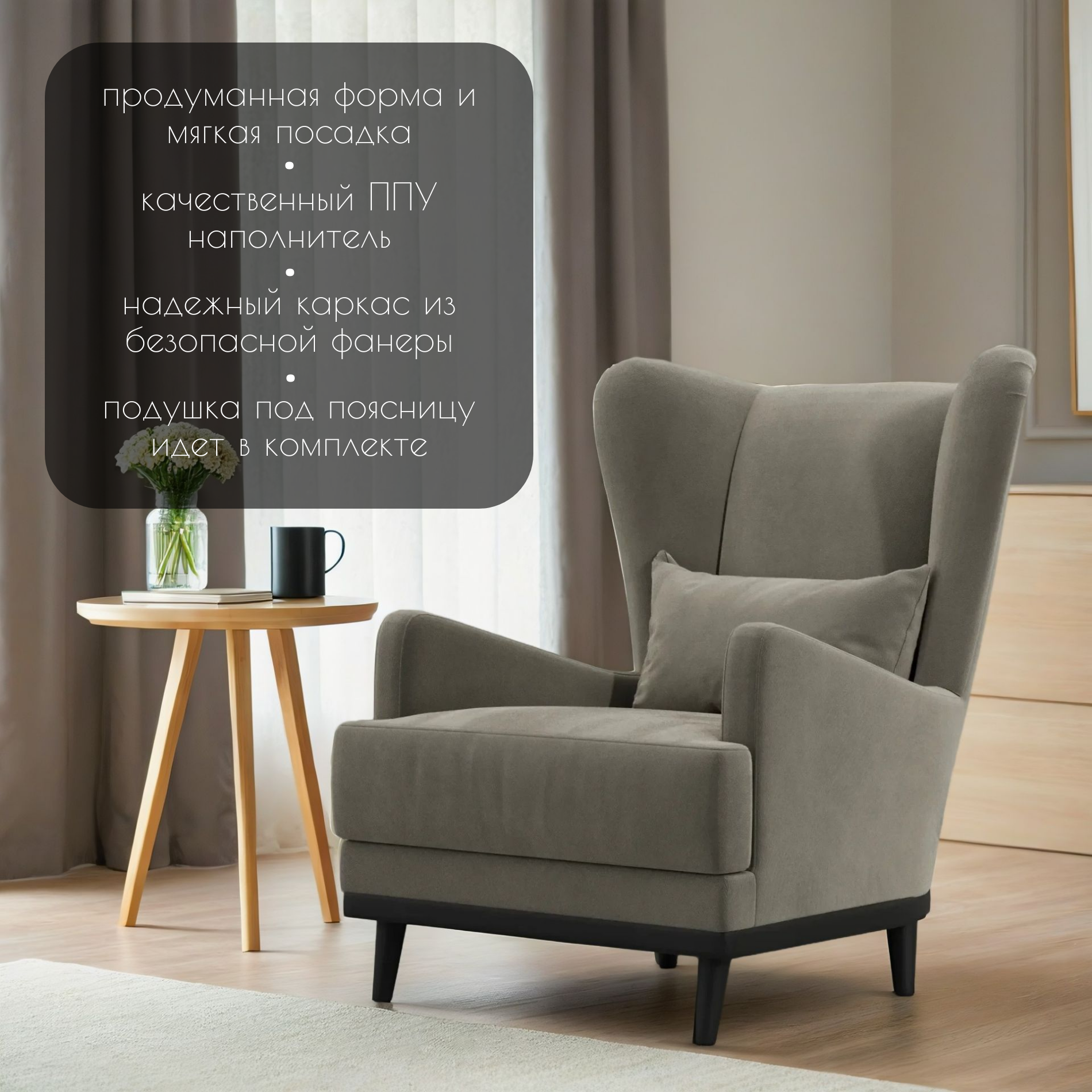 СохранитьКресло Сопрано мягкое, для отдыха и чтения, велюр, цвет: Серо-бежевое, Тауп интересное: