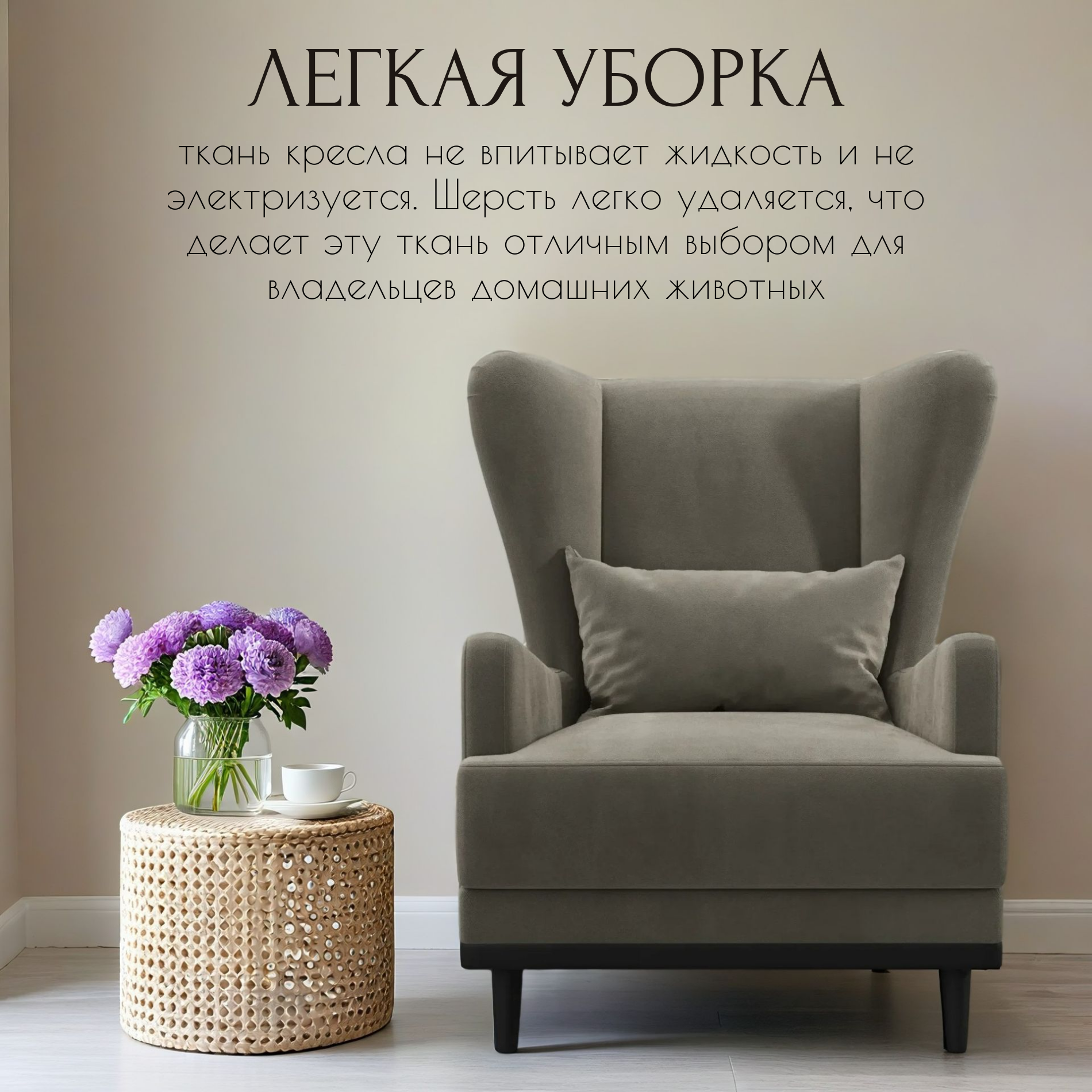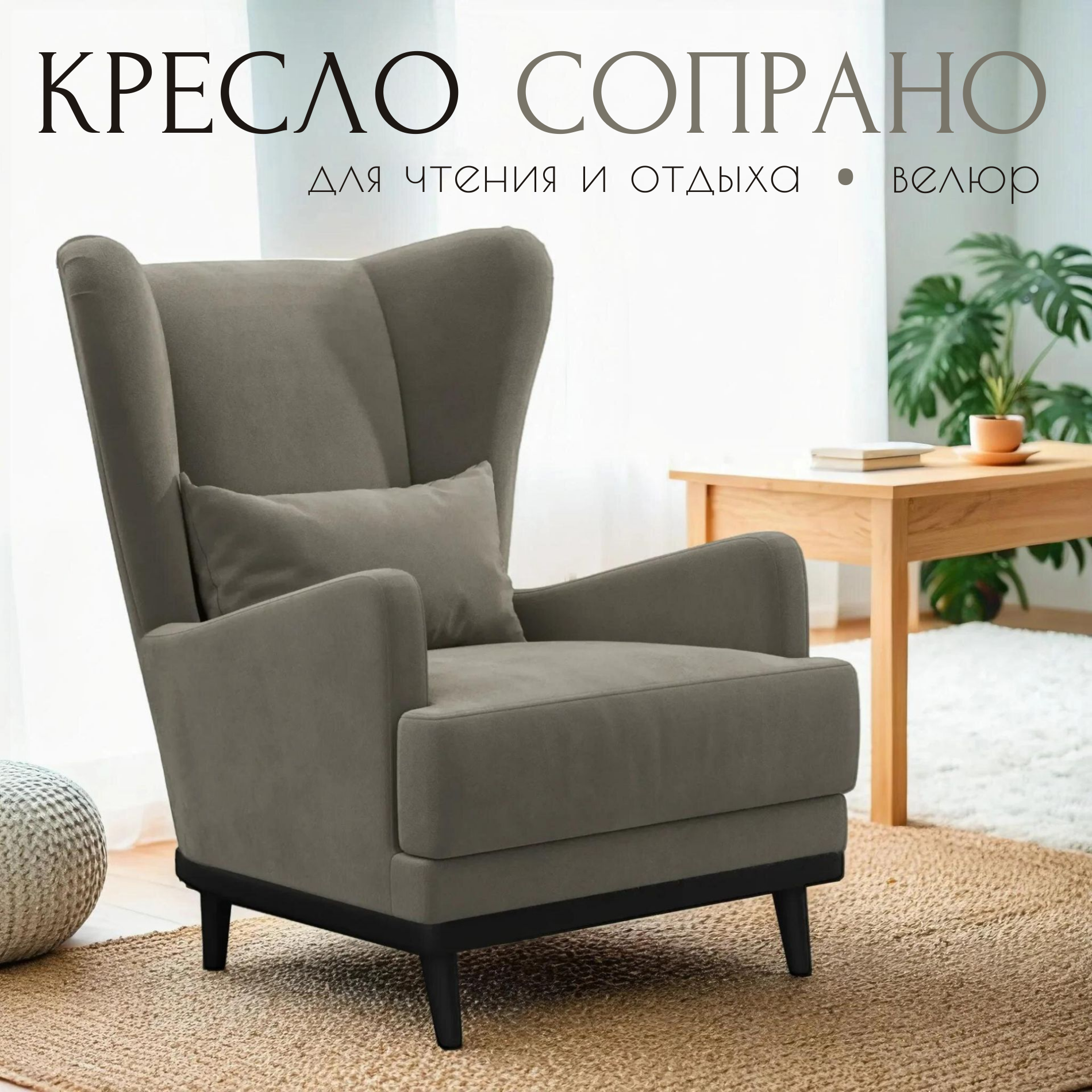 Кресло Сопрано мягкое, для отдыха и чтения, велюр, цвет: Серый