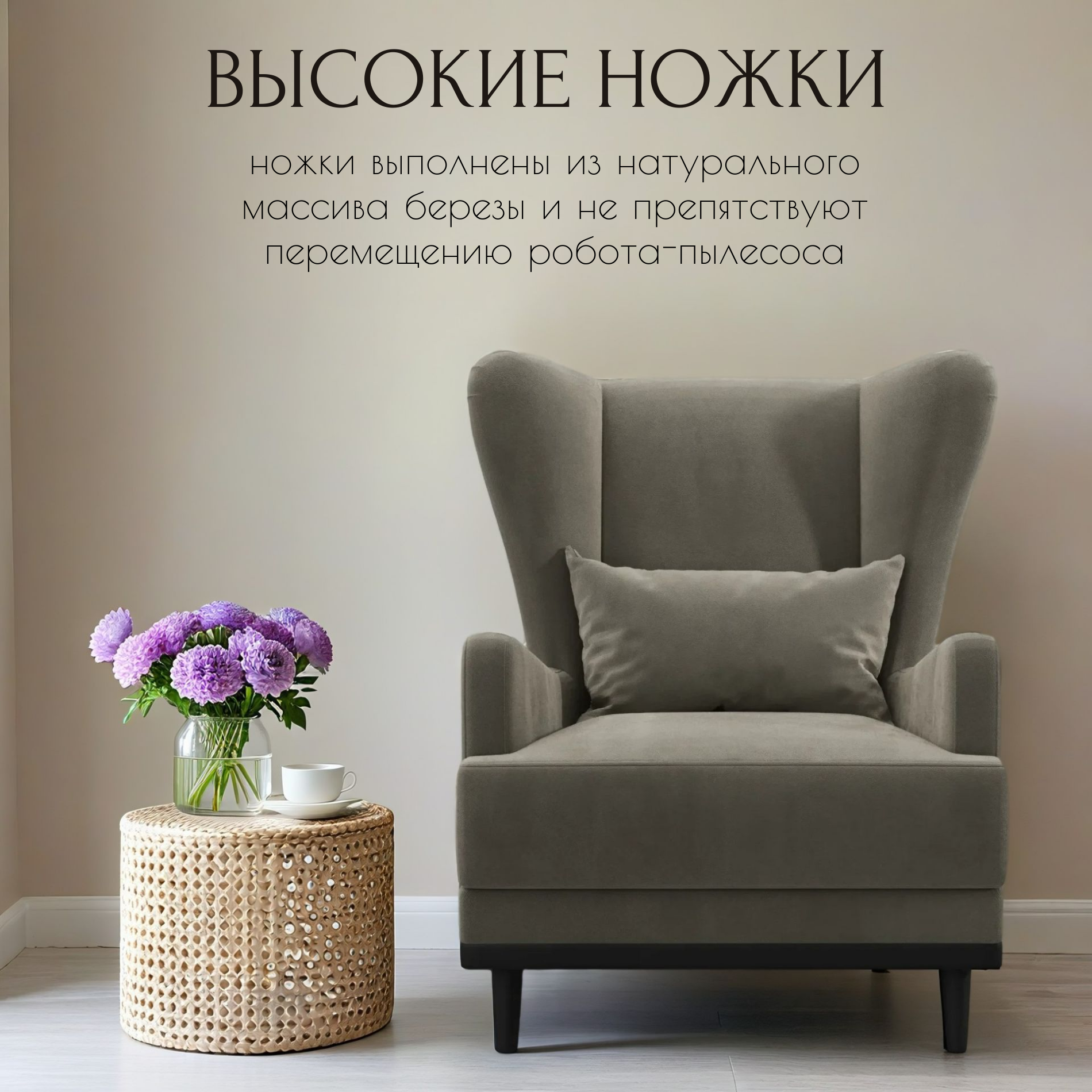 Кресло Сопрано мягкое, для отдыха и чтения, велюр, цвет: Светло-серый