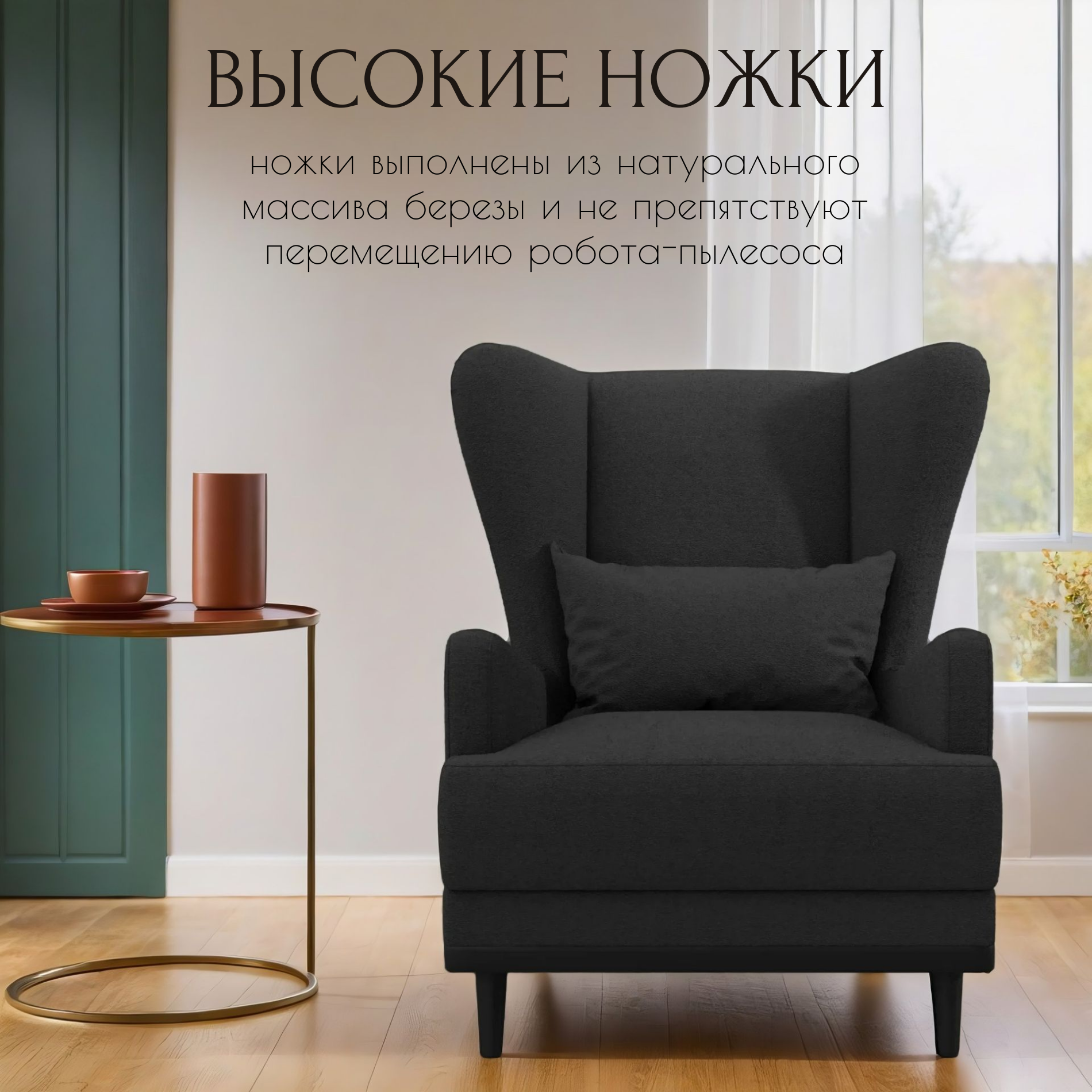 Кресло Афина интерьерное мягкое, кресло букле барашек для дома, цвет: Тёмно-серый