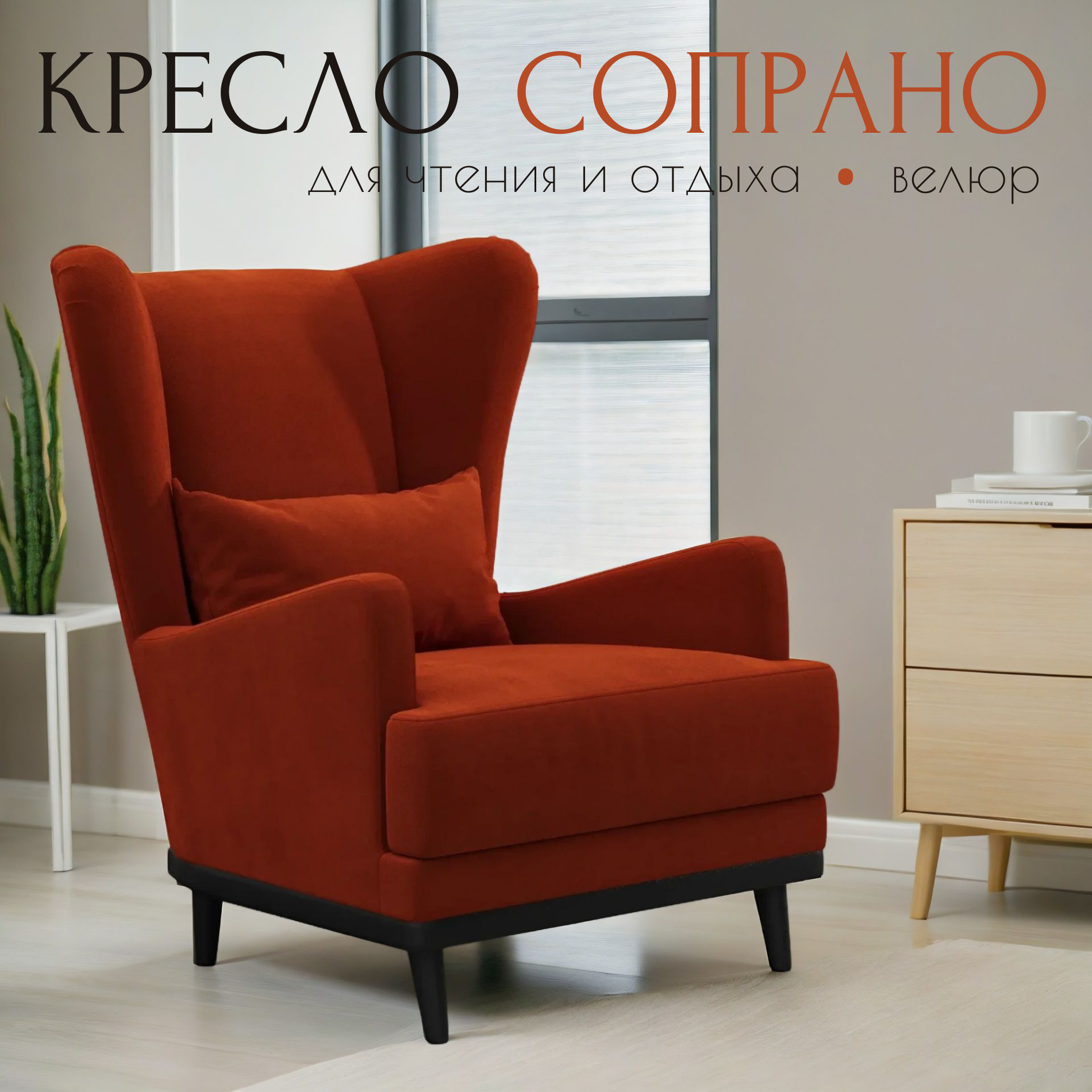Купить Кресло Сопрано мягкое, для отдыха и чтения, велюр, цвет: Тёмно-оранжевый