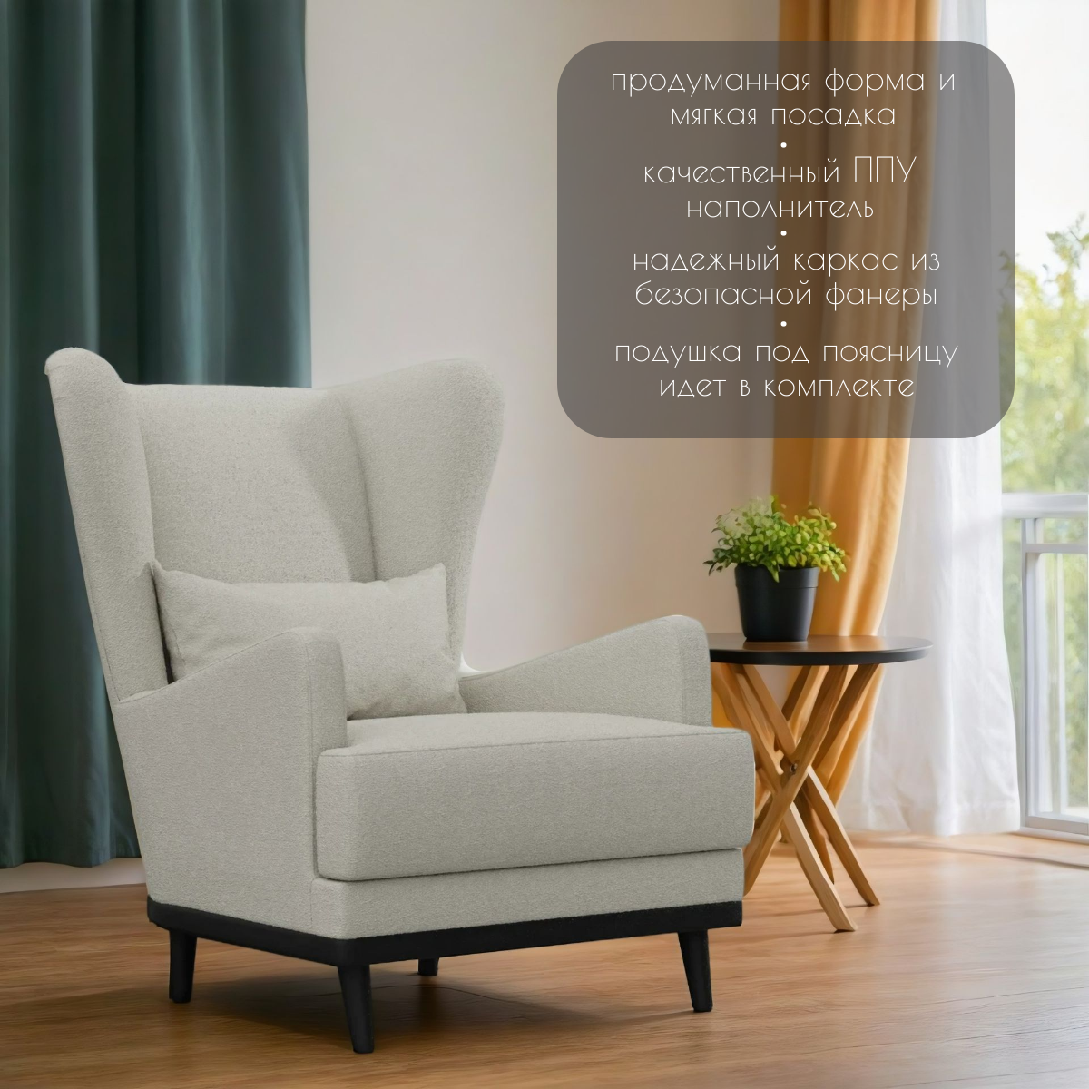 Кресло Афина интерьерное мягкое, кресло букле барашек для дома, цвет: Бежевый