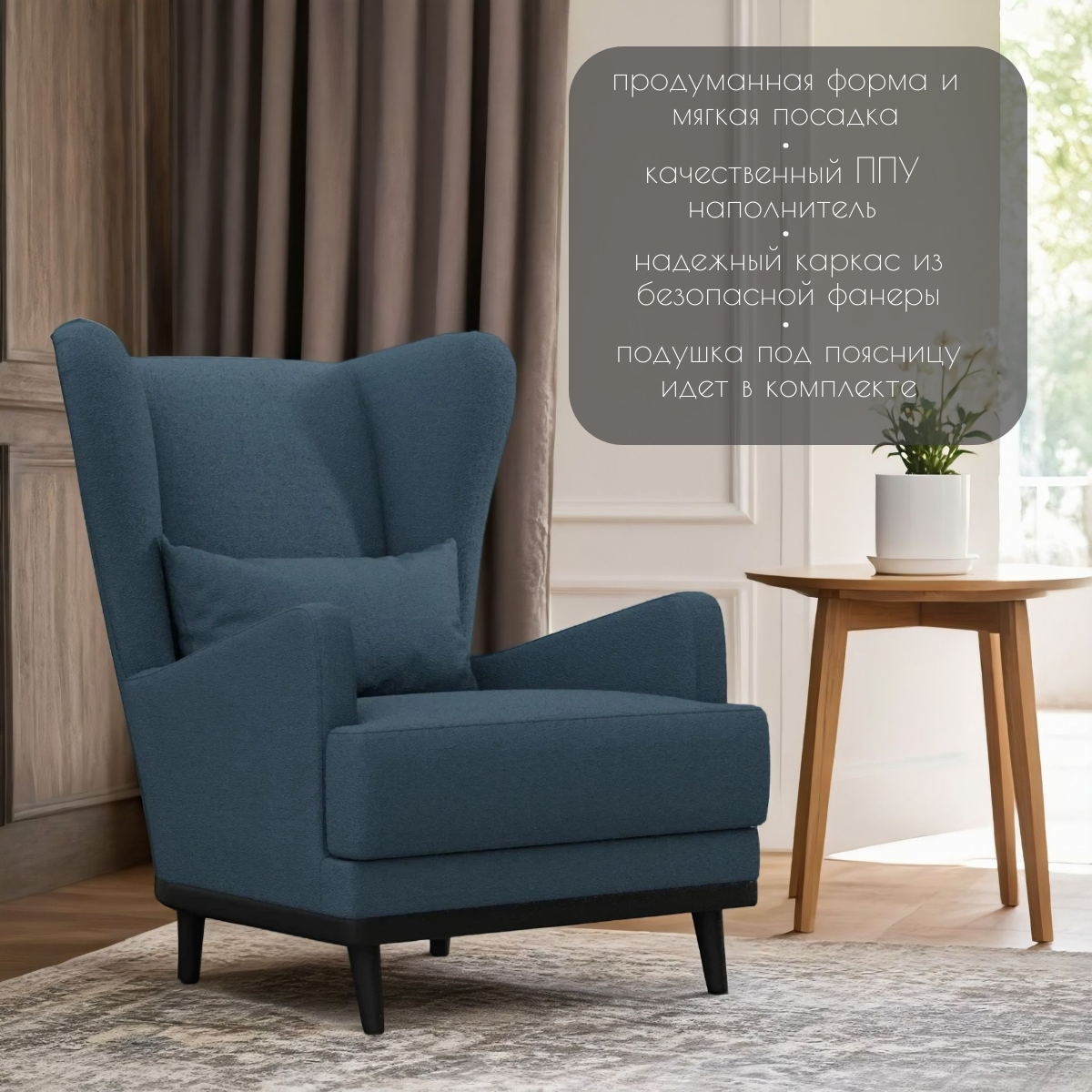 СохранитьКресло Сопрано мягкое, кресло букле, барашек, для отдыха и чтения, цвет: Темно-голубой, Синий, Джинсовый интересное: