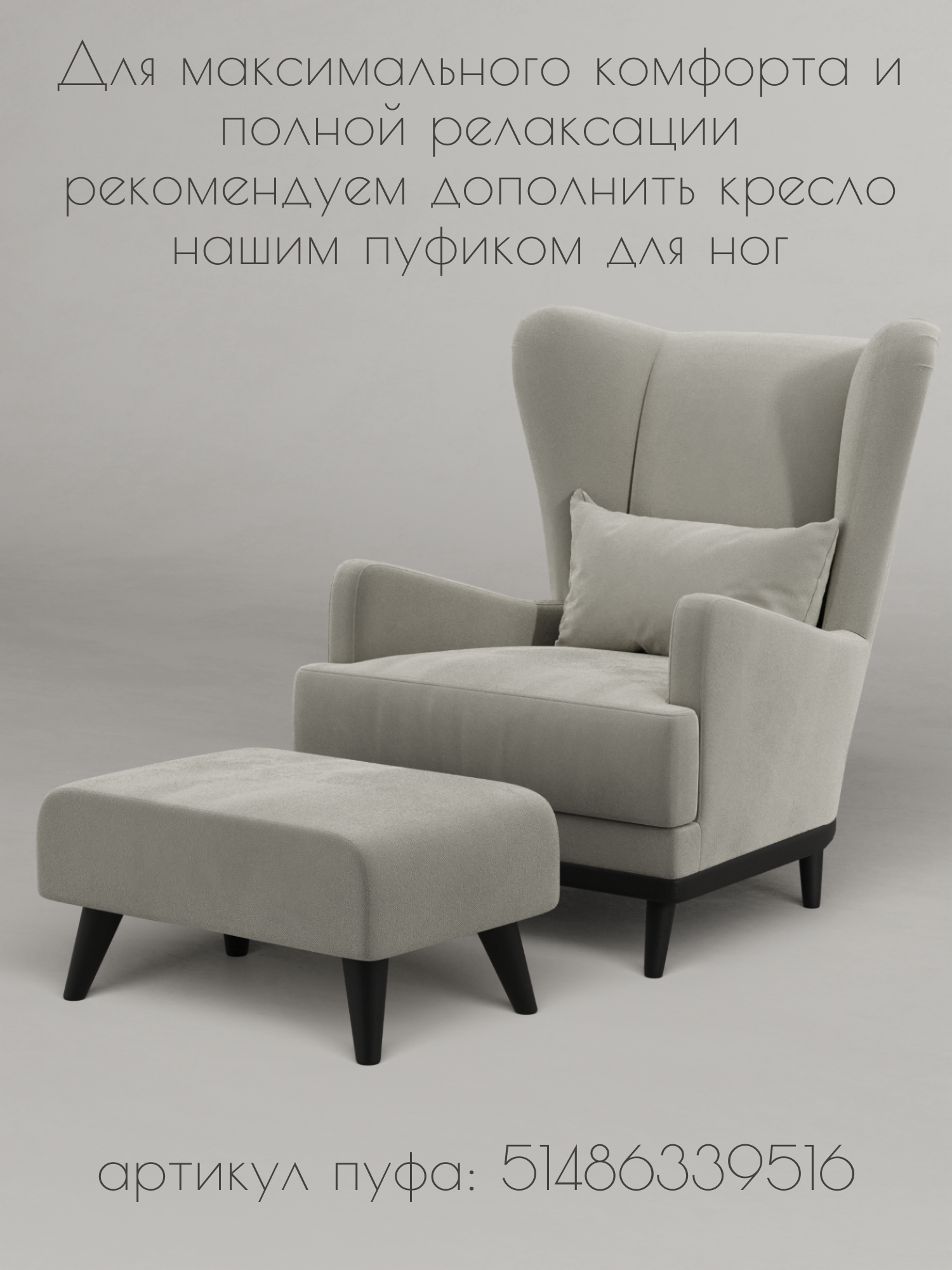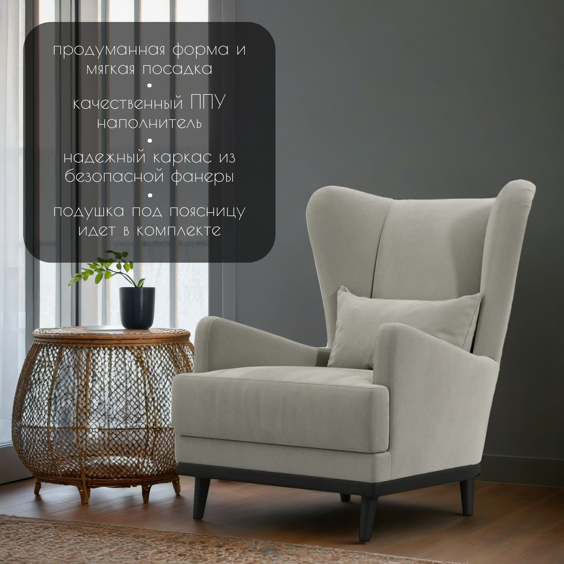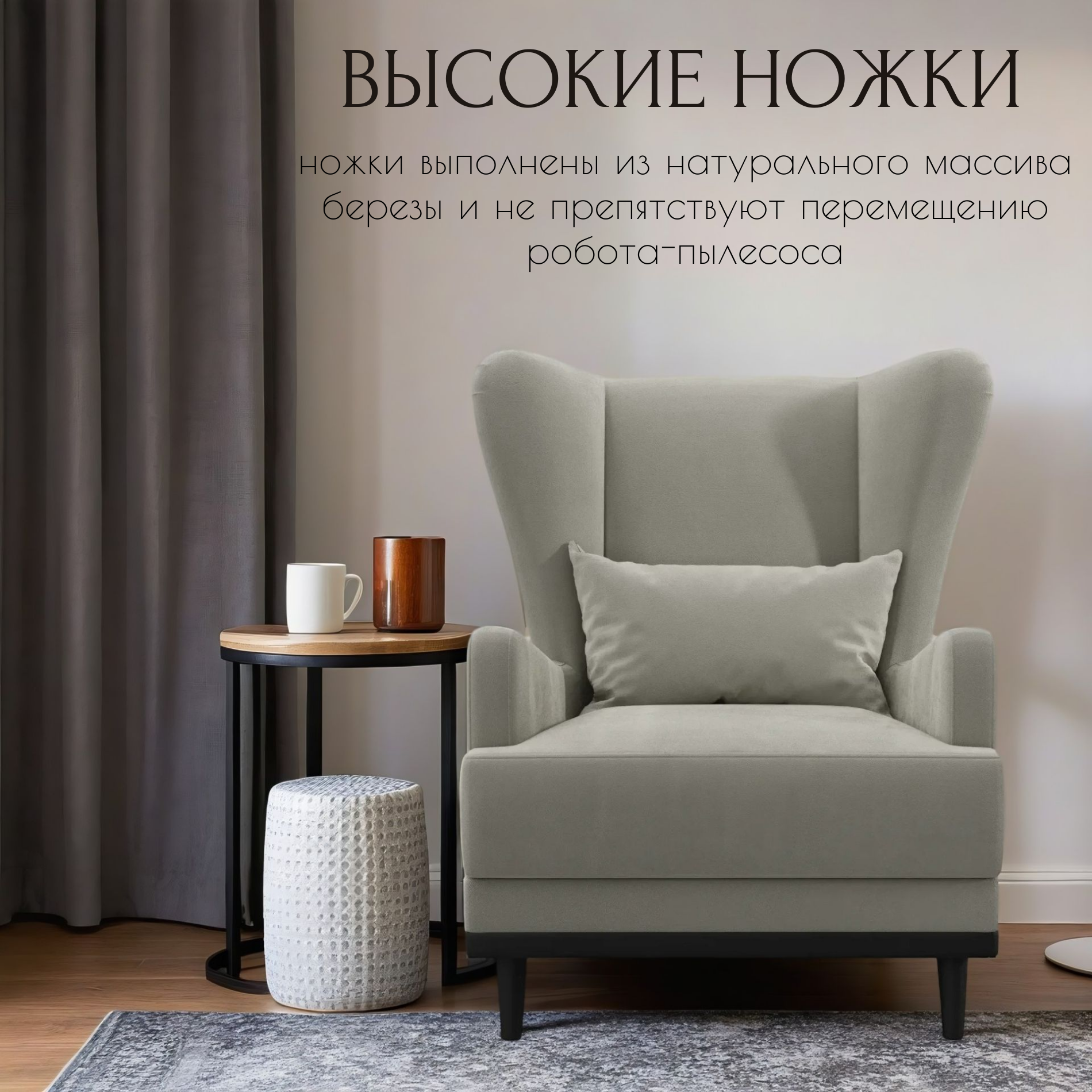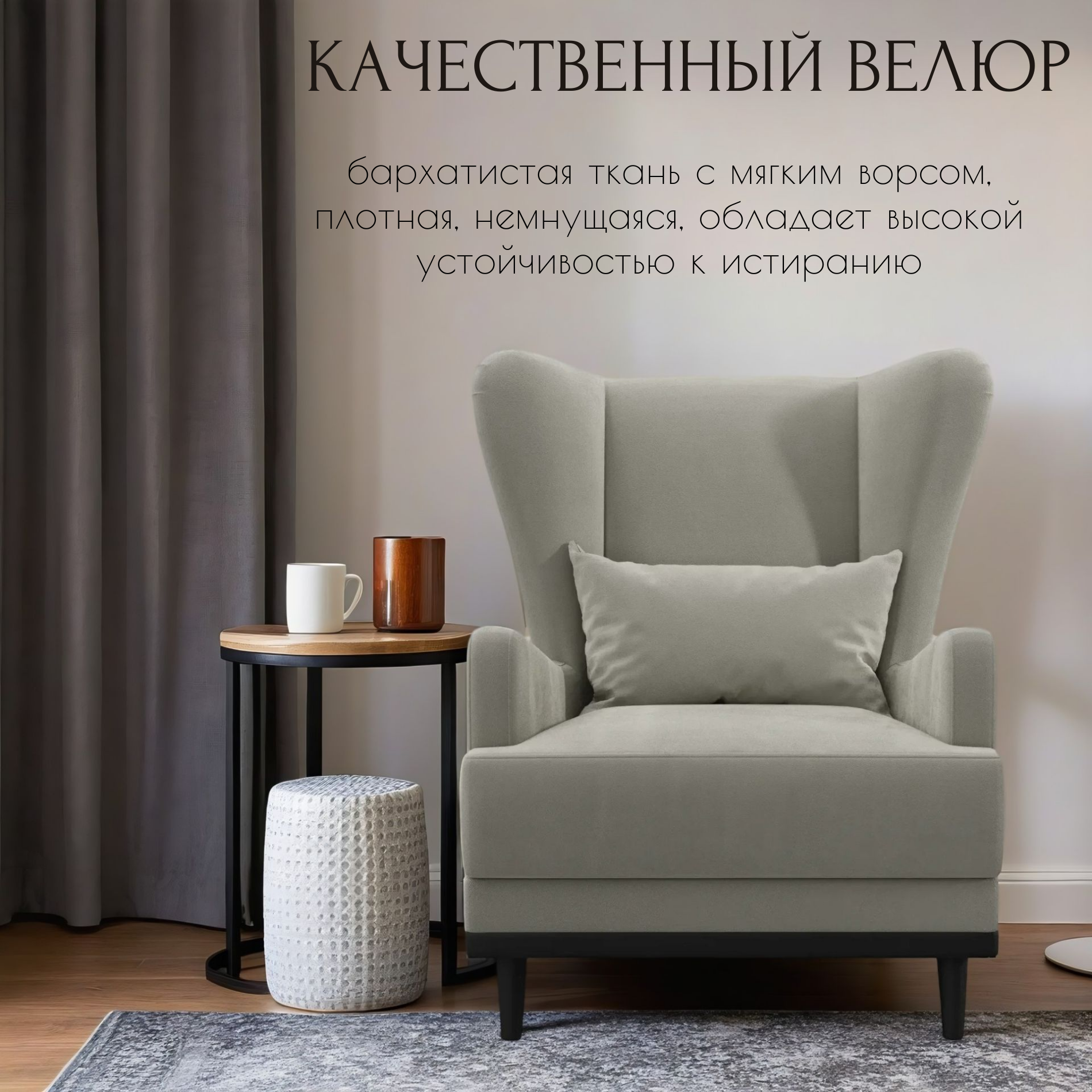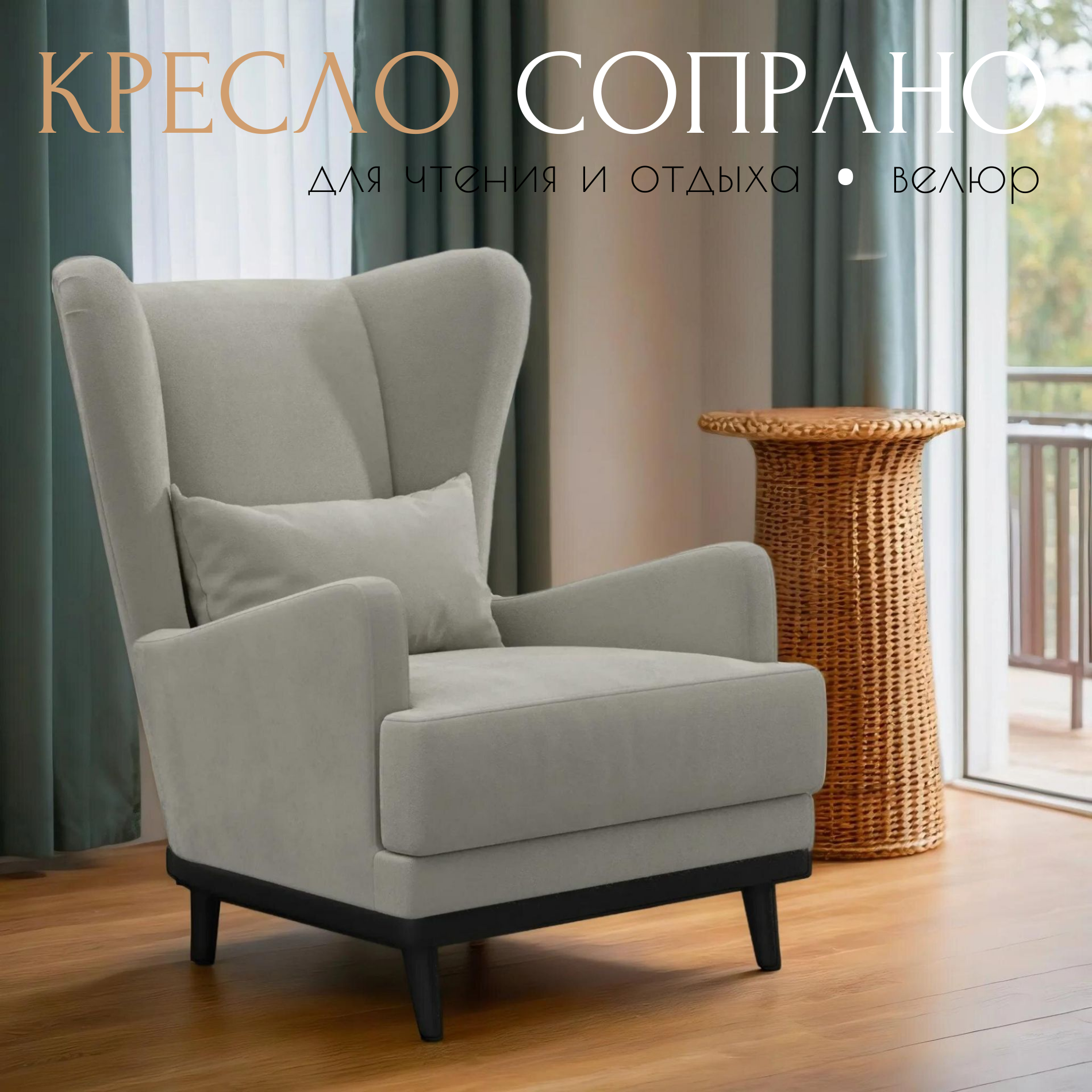 Кресло Сопрано мягкое, для отдыха и чтения, велюр, цвет: Светло-серый