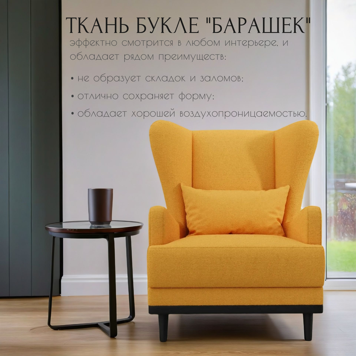 Кресло Афина интерьерное мягкое, кресло букле барашек для дома, цвет: Жёлтый