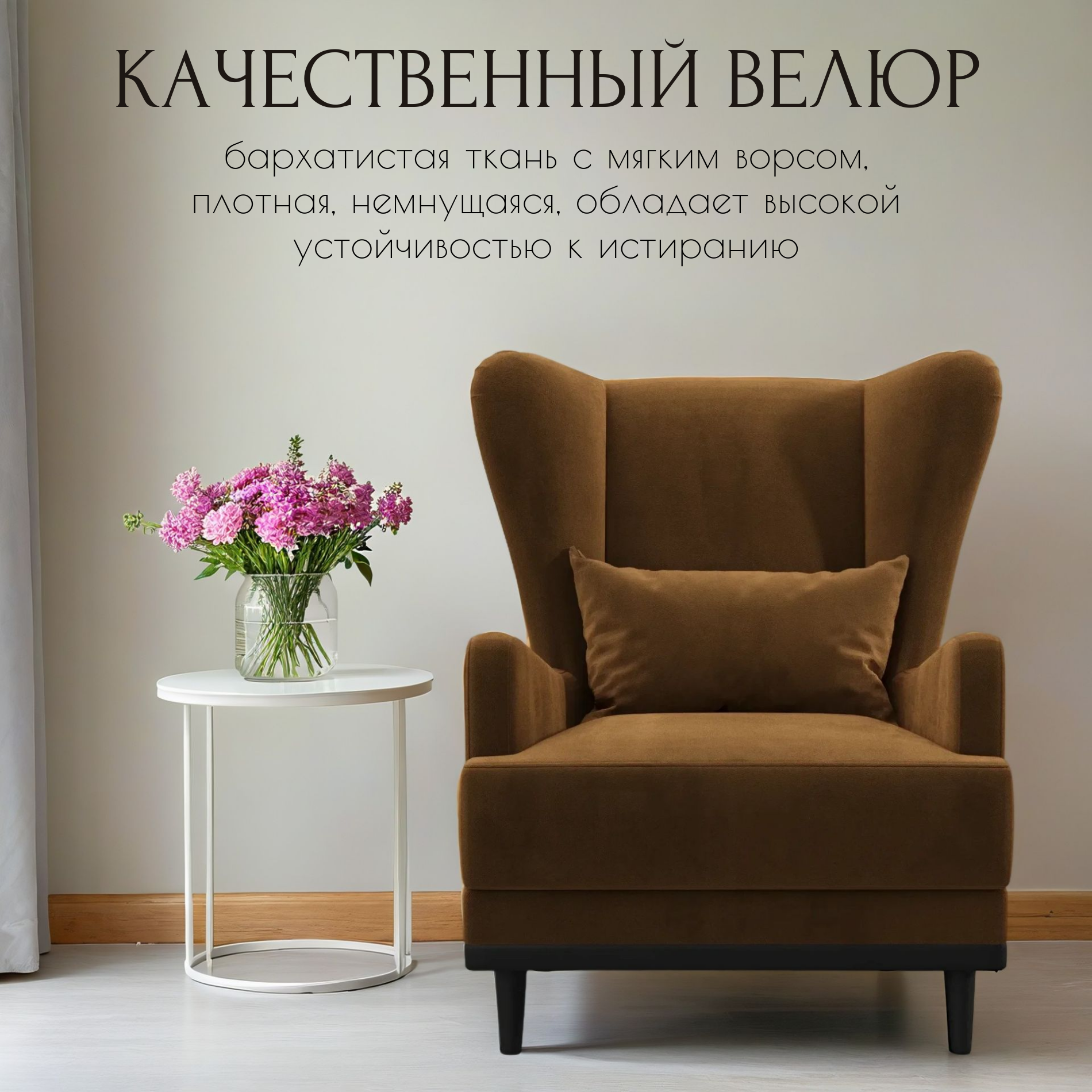 Кресло Сопрано мягкое, для отдыха и чтения, велюр, цвет: Коричневый