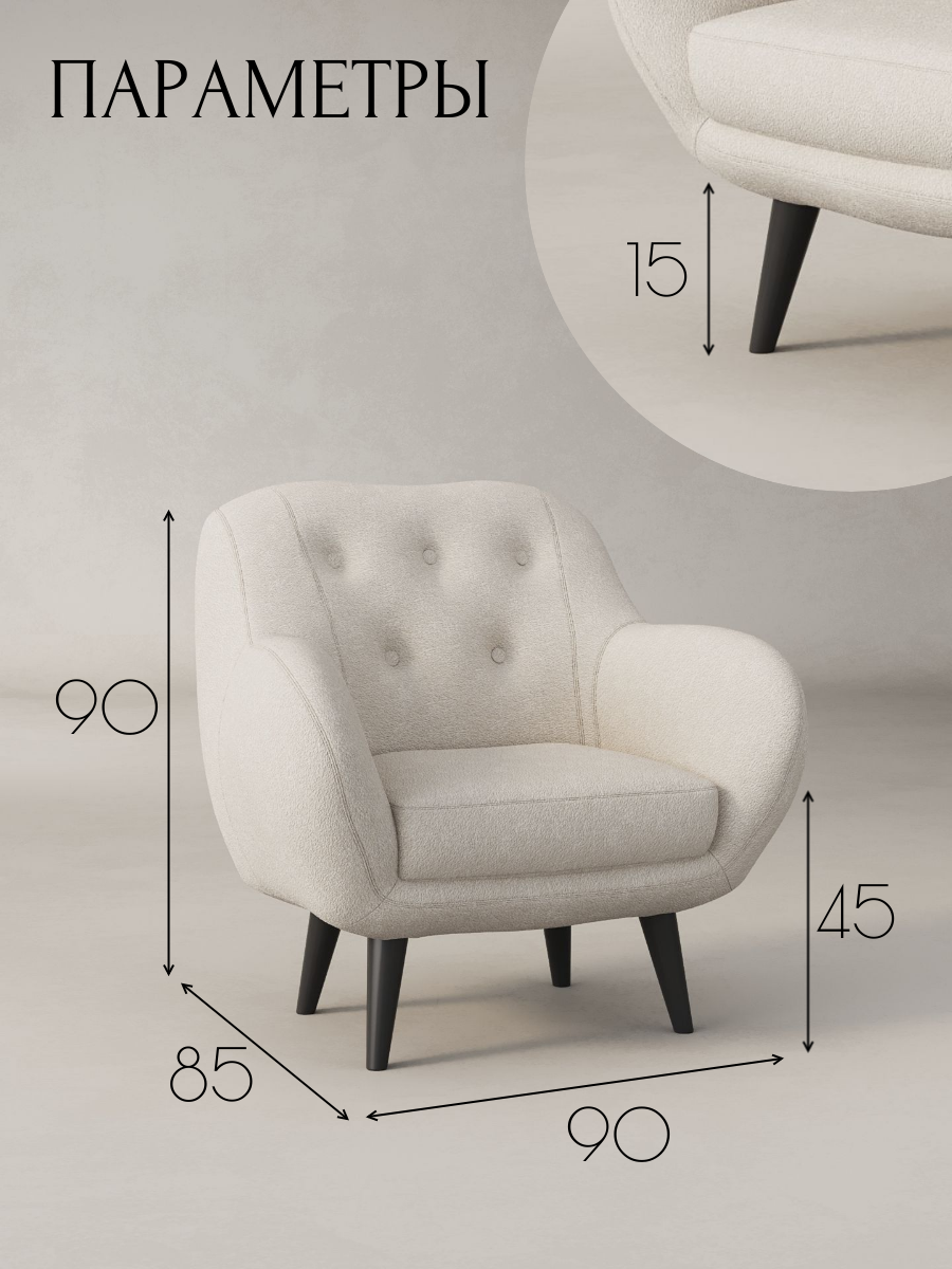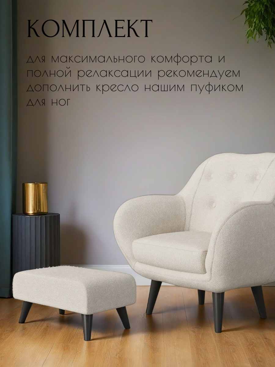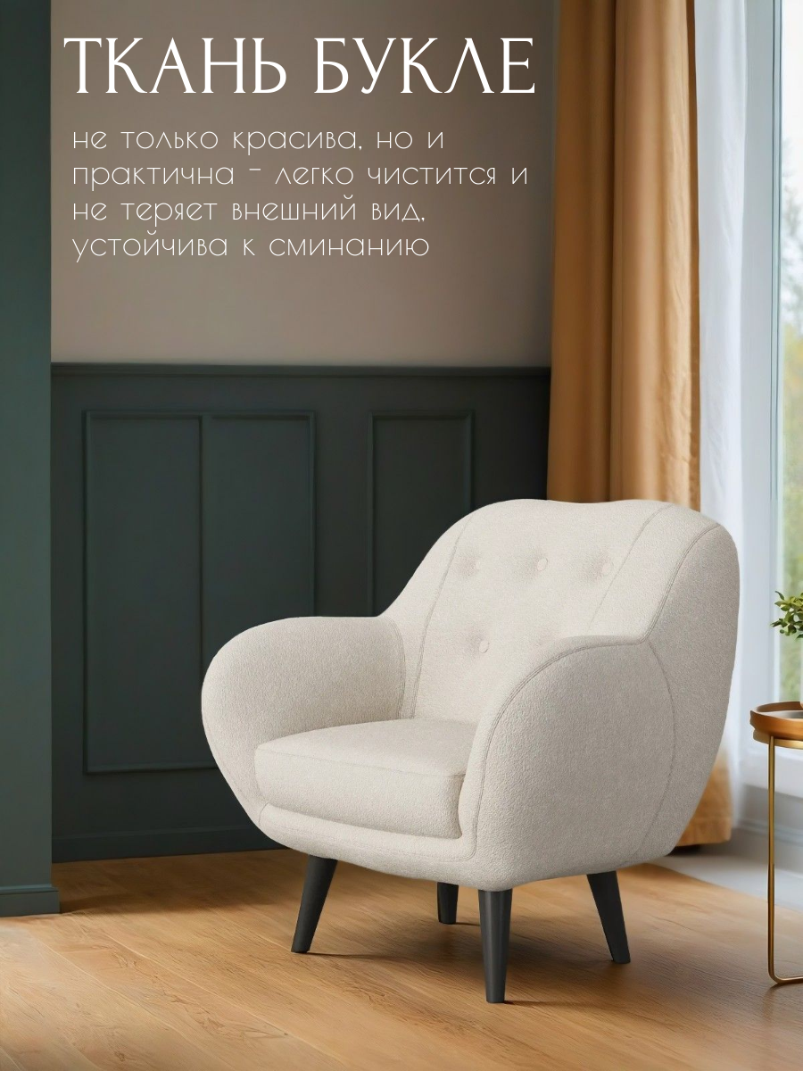 СохранитьКресло Афина интерьерное мягкое, кресло букле барашек для дома, цвет: Молочный интересное: