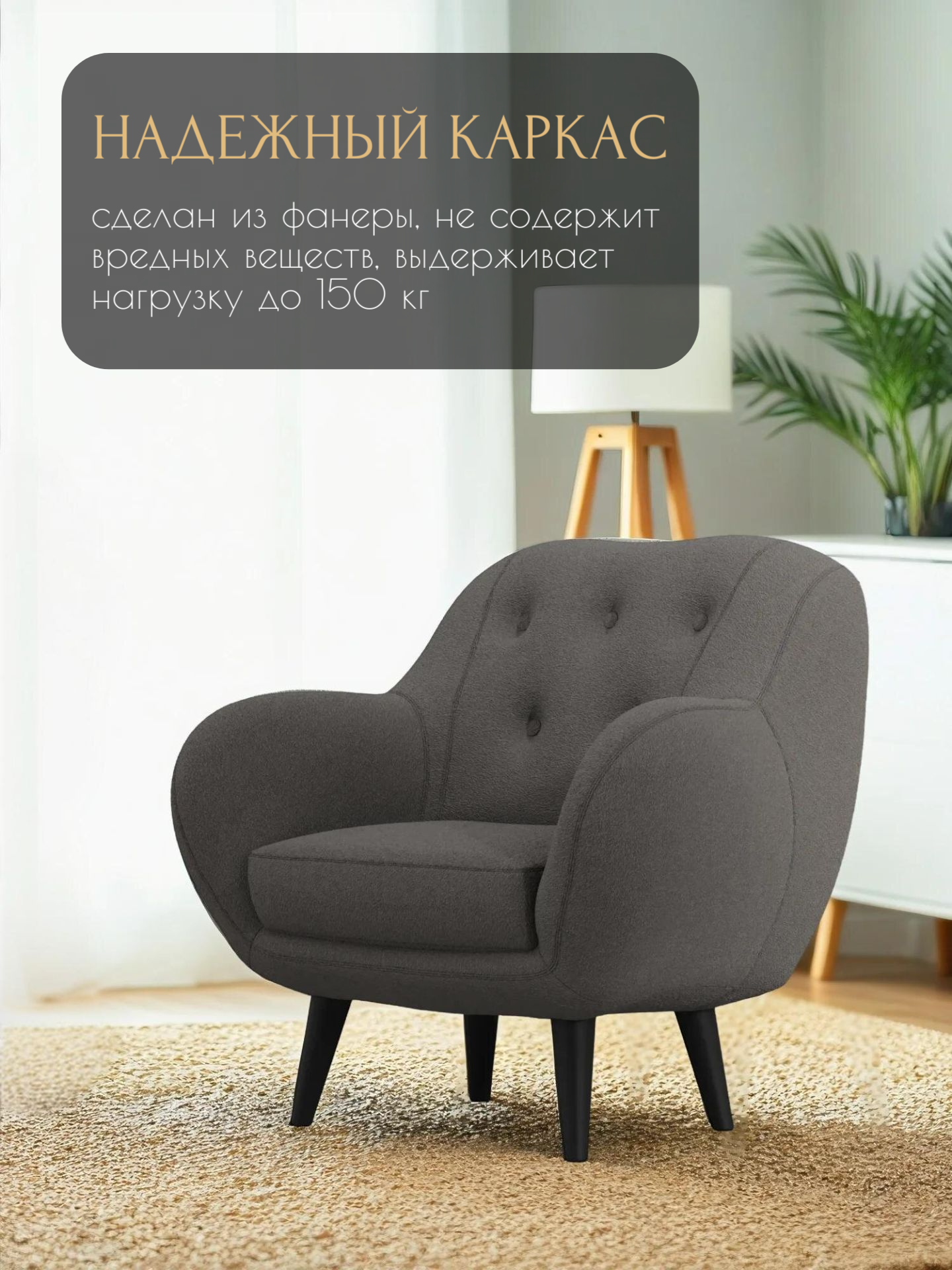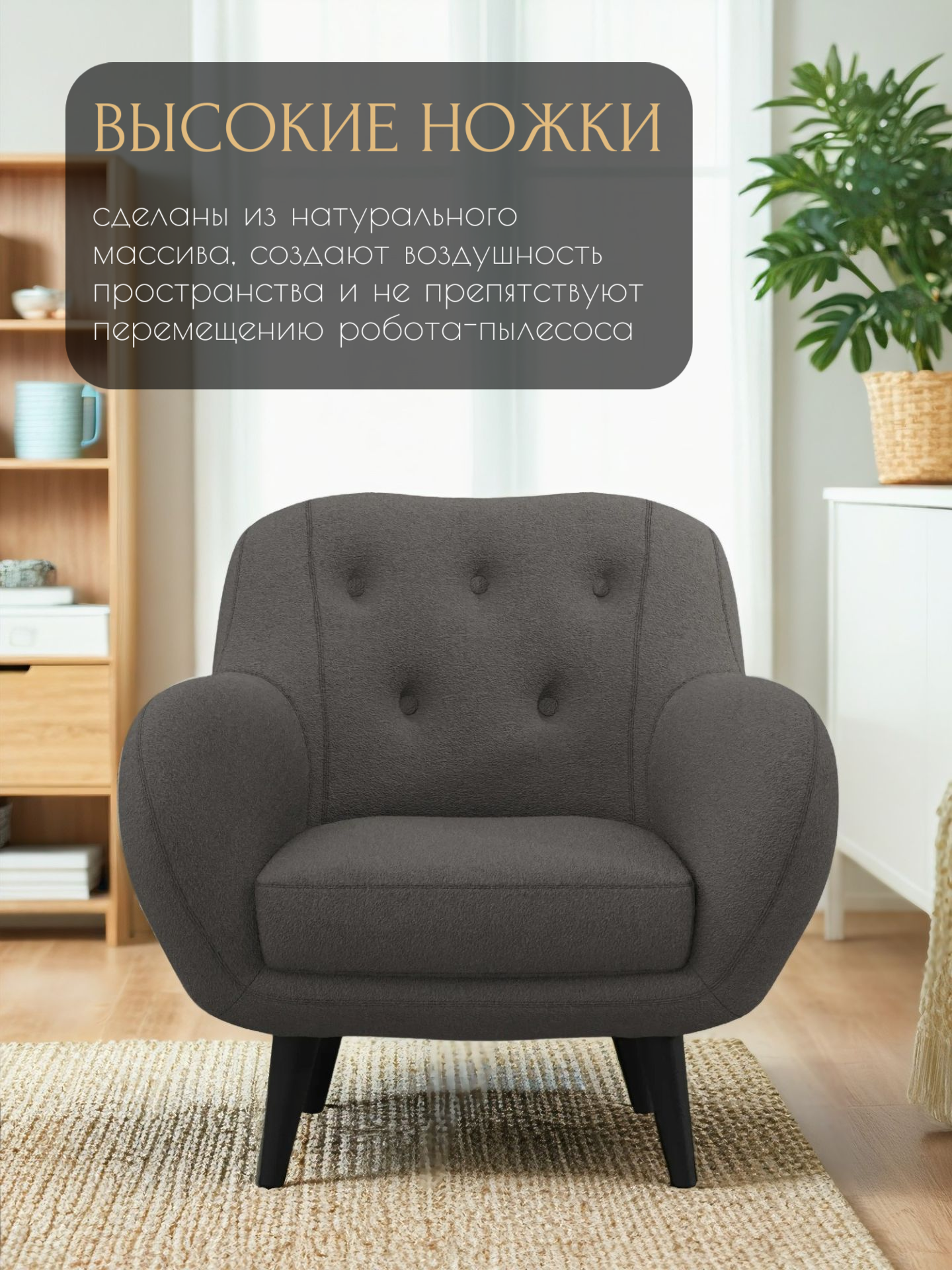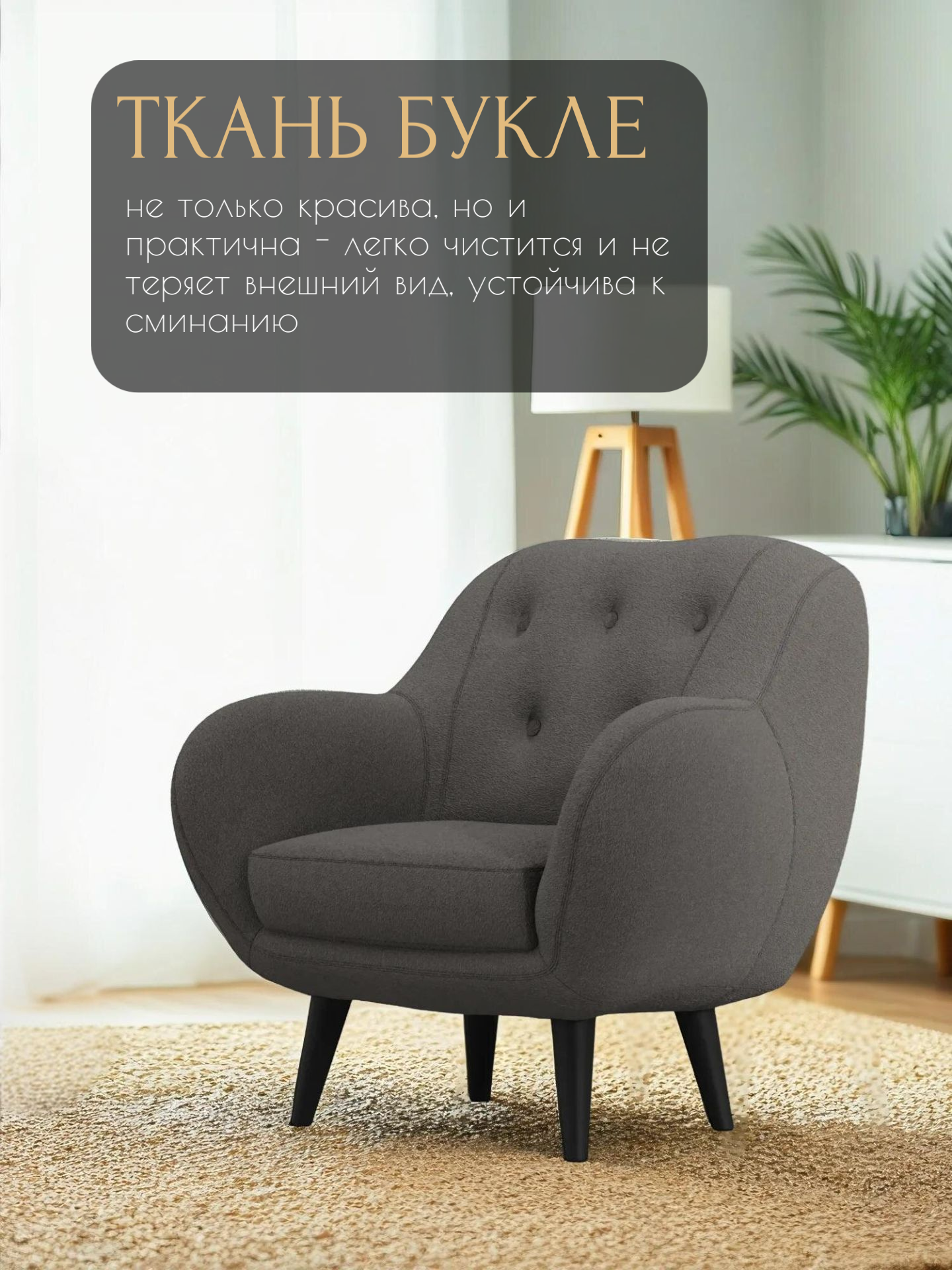 СохранитьКресло Афина интерьерное мягкое, кресло букле барашек для дома, цвет: Тёмно-серый интересное: