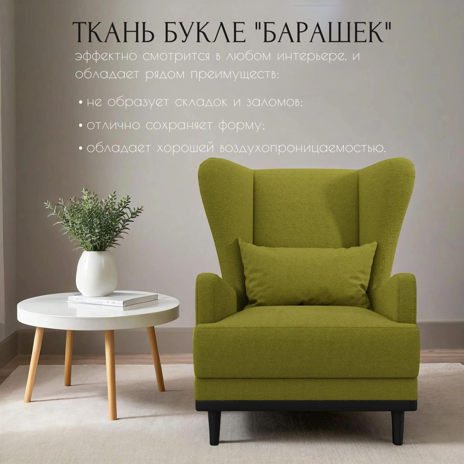 Кресло Афина интерьерное мягкое, кресло букле барашек для дома, цвет: Хаки, зелёный