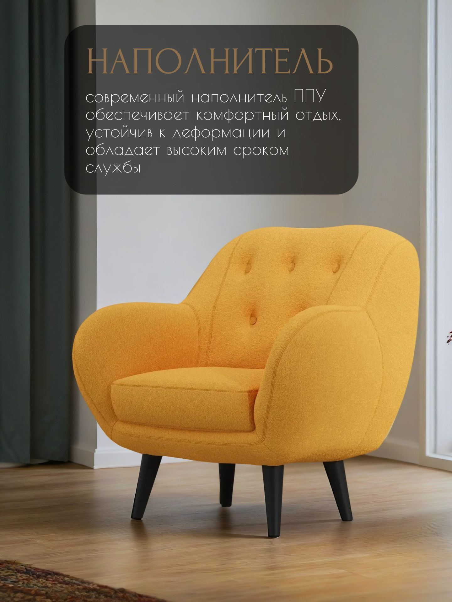 СохранитьКресло Афина интерьерное мягкое, кресло букле барашек для дома, цвет: Жёлтый интересное: