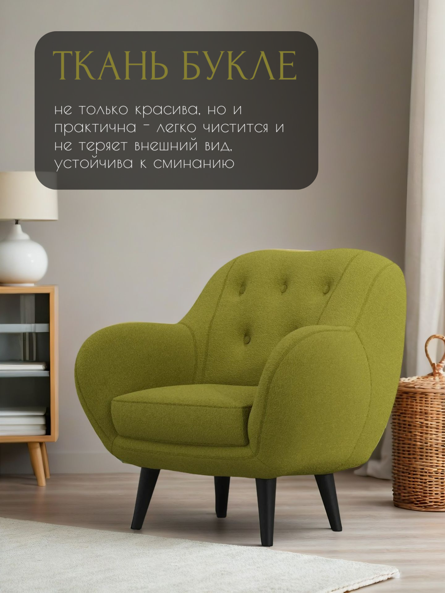 СохранитьКресло Афина интерьерное мягкое, кресло букле барашек для дома, цвет: Зелёный интересное: