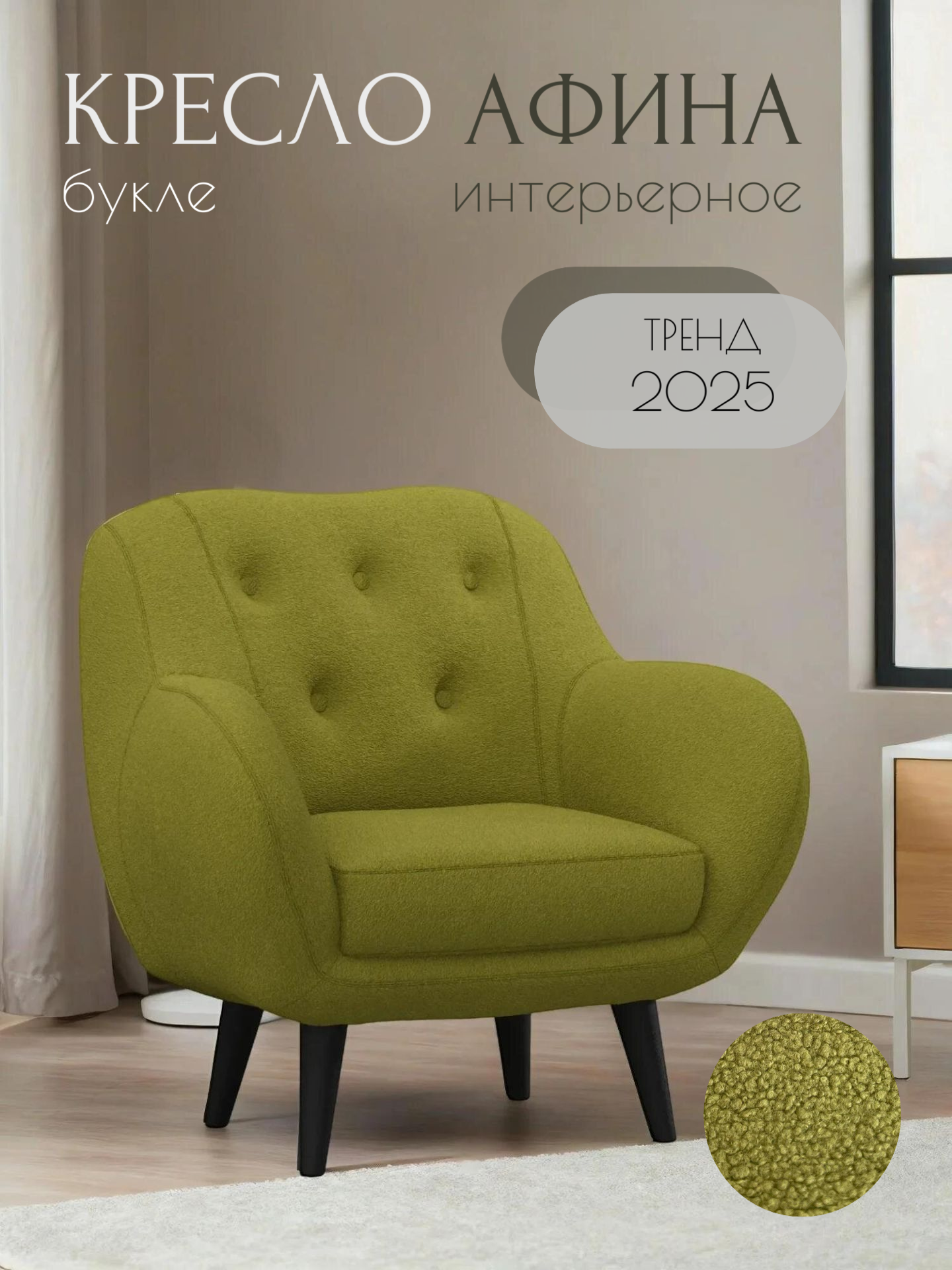 Кресло Афина интерьерное мягкое, кресло букле барашек для дома, цвет: Хаки, зелёный