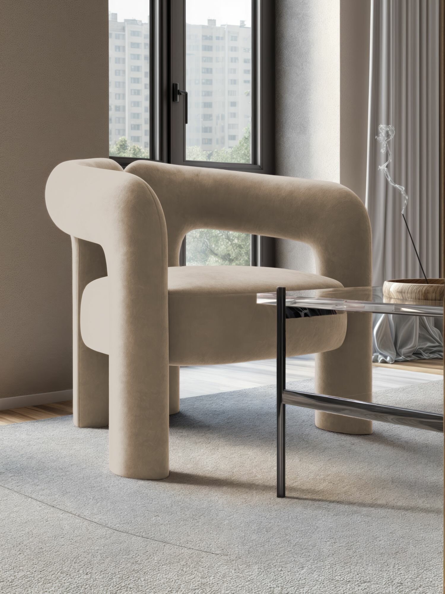 Купить Кресло дизайнерское AZZURRO, велюр, цвет ДРИМ БЕЖ, 88х72х72 см