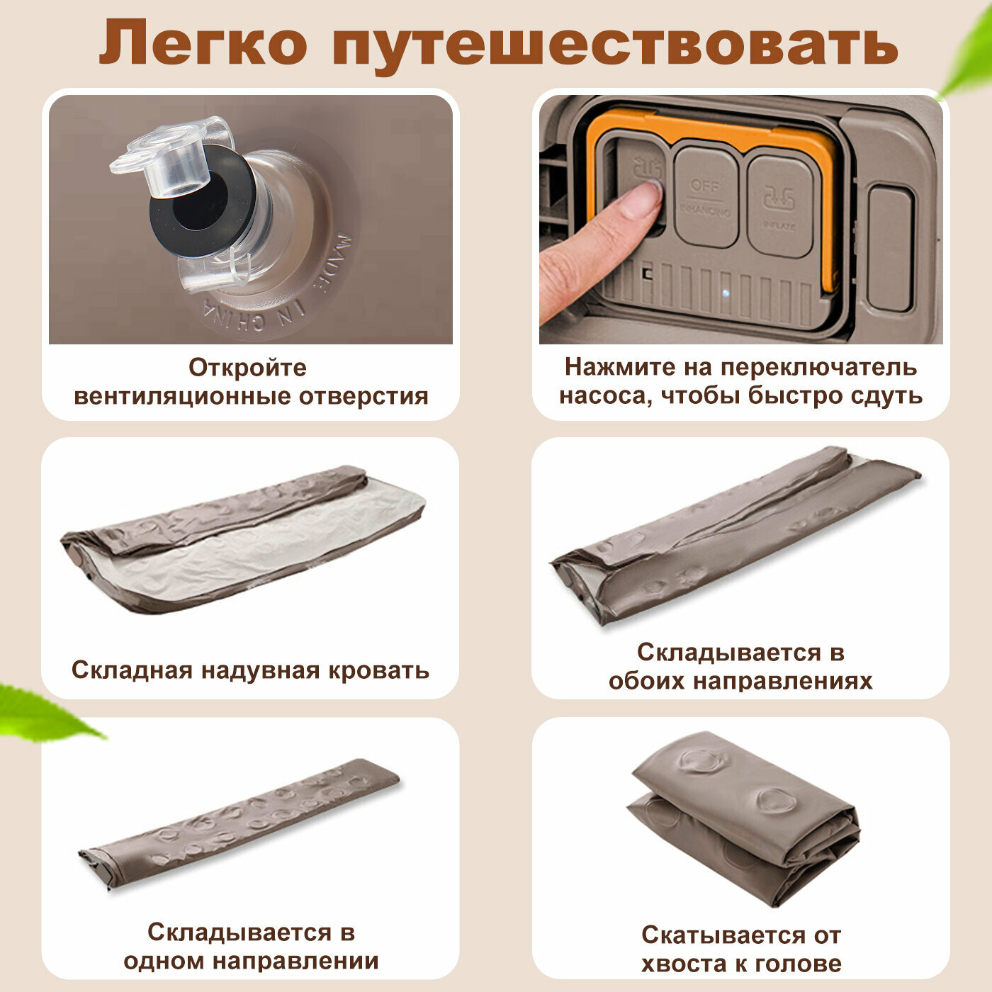 СохранитьМатрас надувной, для сна, надувная кровать двуспальный, со спинкой, с насос встроенный электрический, Макс 195х152х40CM интересное: