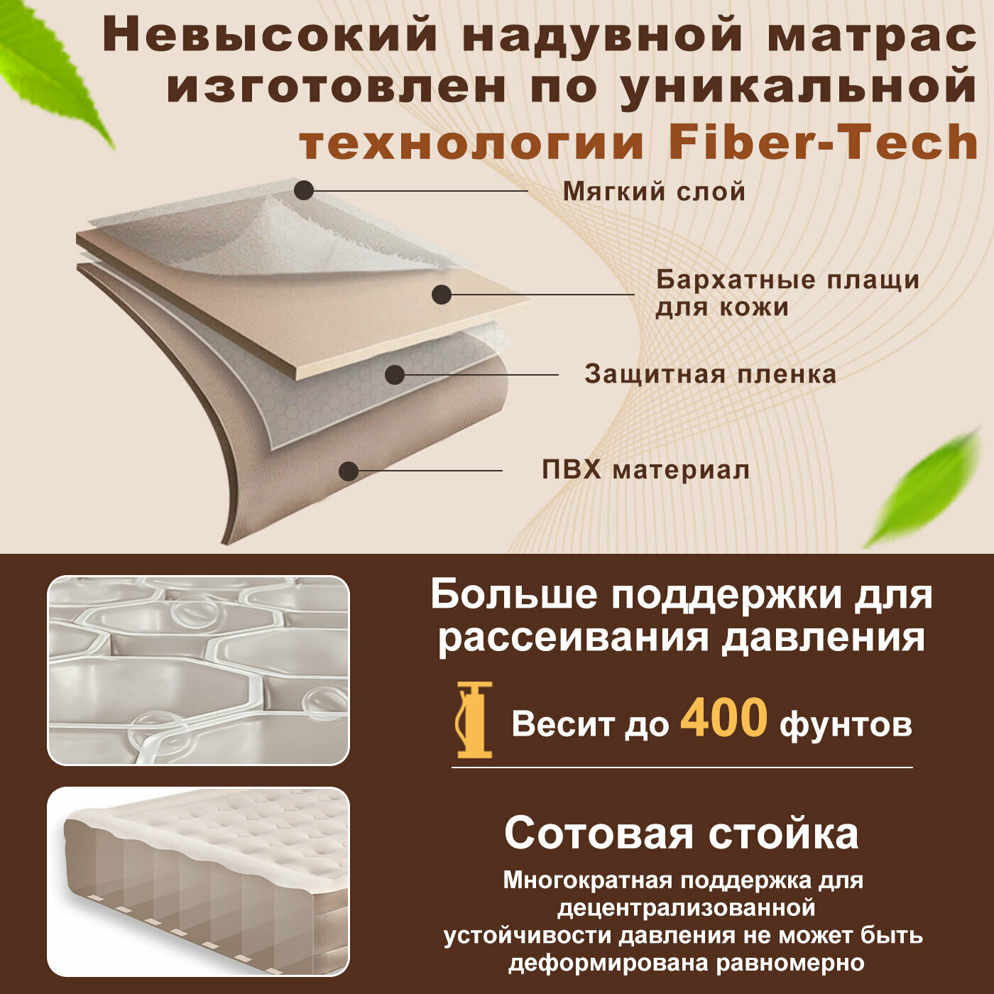 Матрас надувной, для сна, надувная кровать двуспальный, со спинкой, с насос встроенный электрический, Макс 195х152х40CM