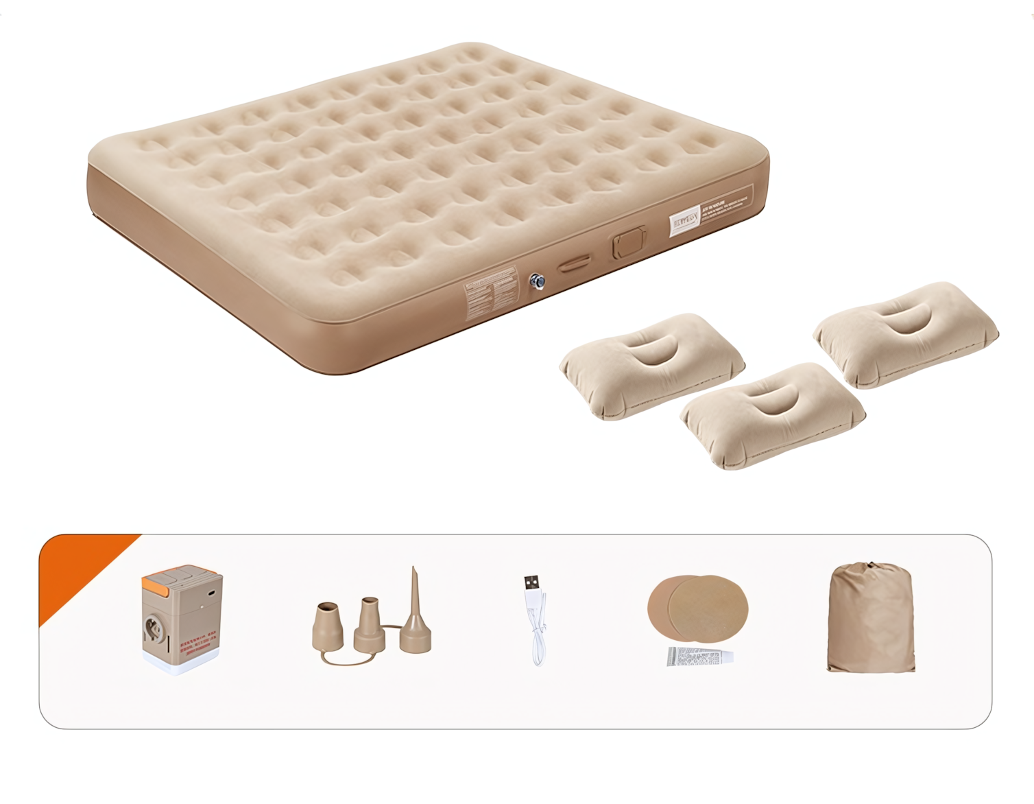 Кровать надувная автоматическая, трехместная, размер 200х180х40 см + три подушки