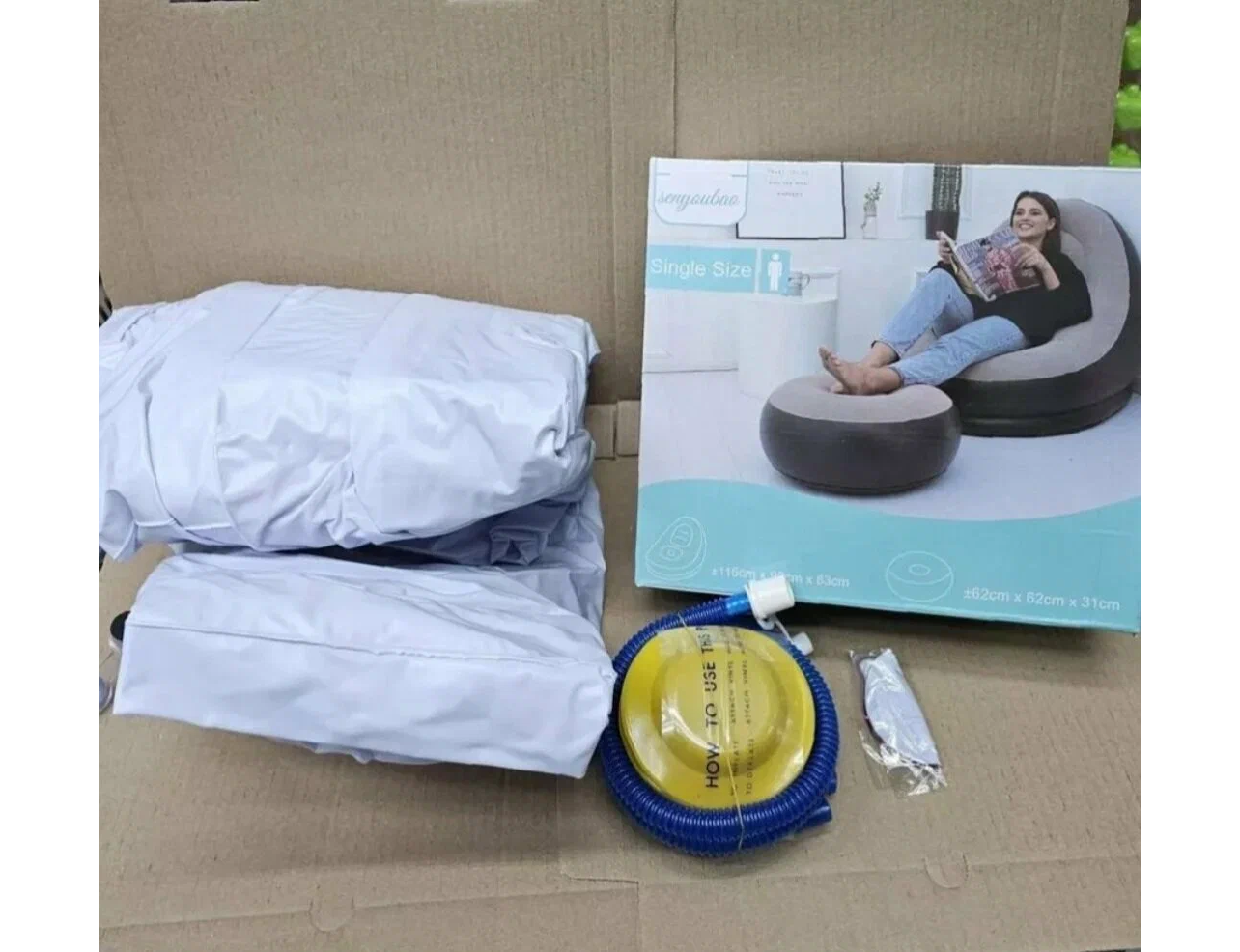 Кресло надувное с пуфиком. интересное: