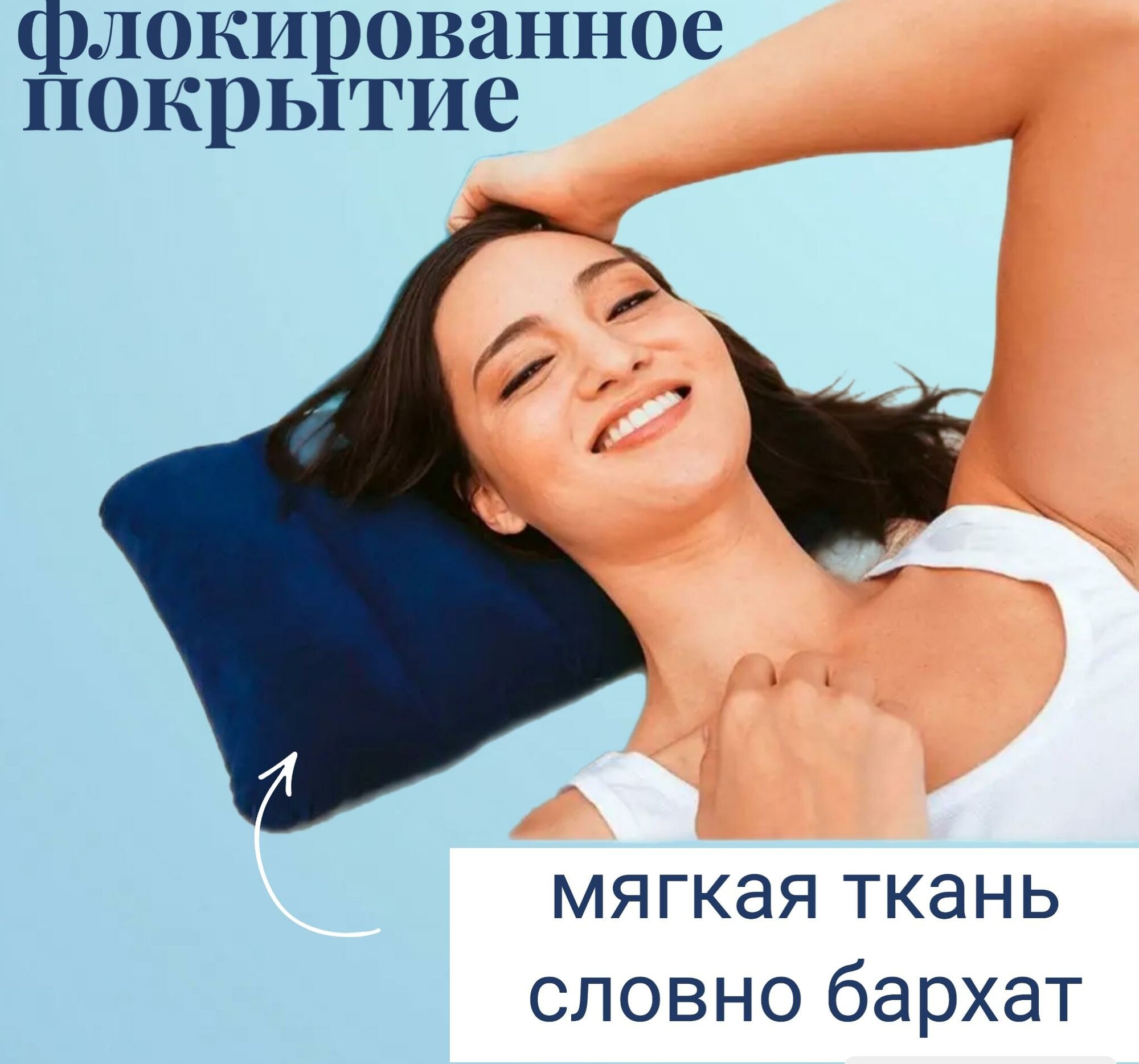 Подушка дорожная надувная туристическая для путешествий и плавания синяя под голову 47*29 см интересное: