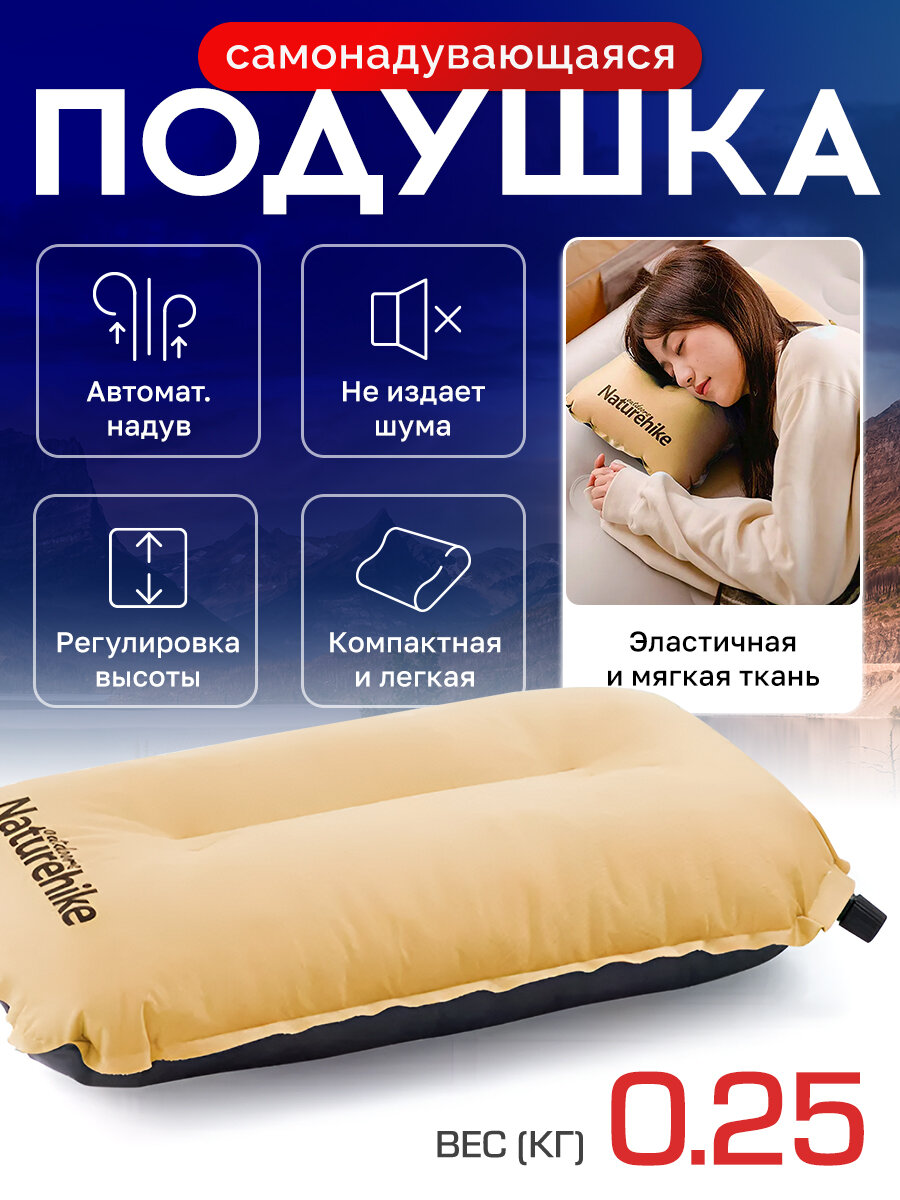 Подушка Naturehike, желтая, самонадувная, 46 см x 27 см x 9,50 см интересное: