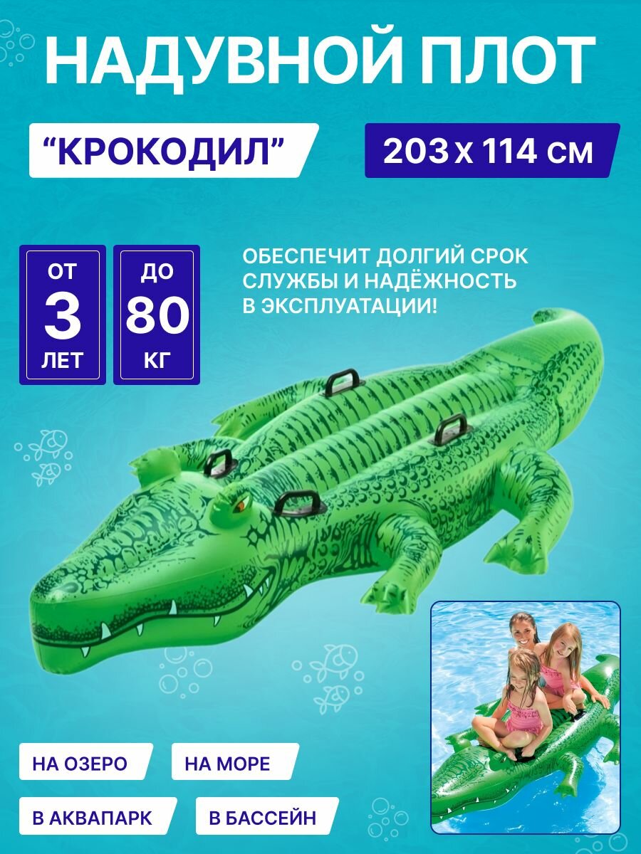 Надувной матрас (плот) для плавания с ручками Intex 58562 "Крокодил", 203х114см, от 3 лет, до 80 кг. интересное: