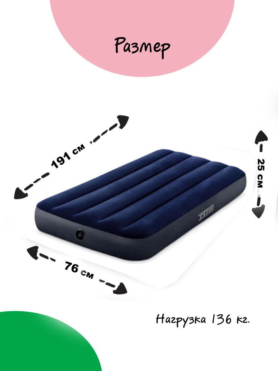 Купить Односпальный надувной матрас Intex (76 см), флокированное покрытие, ремкомплект, темно-синий