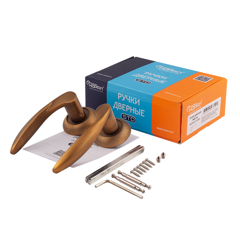 Ручка дверная межкомнатная медь с защелкой и заверткой без ключей комплект