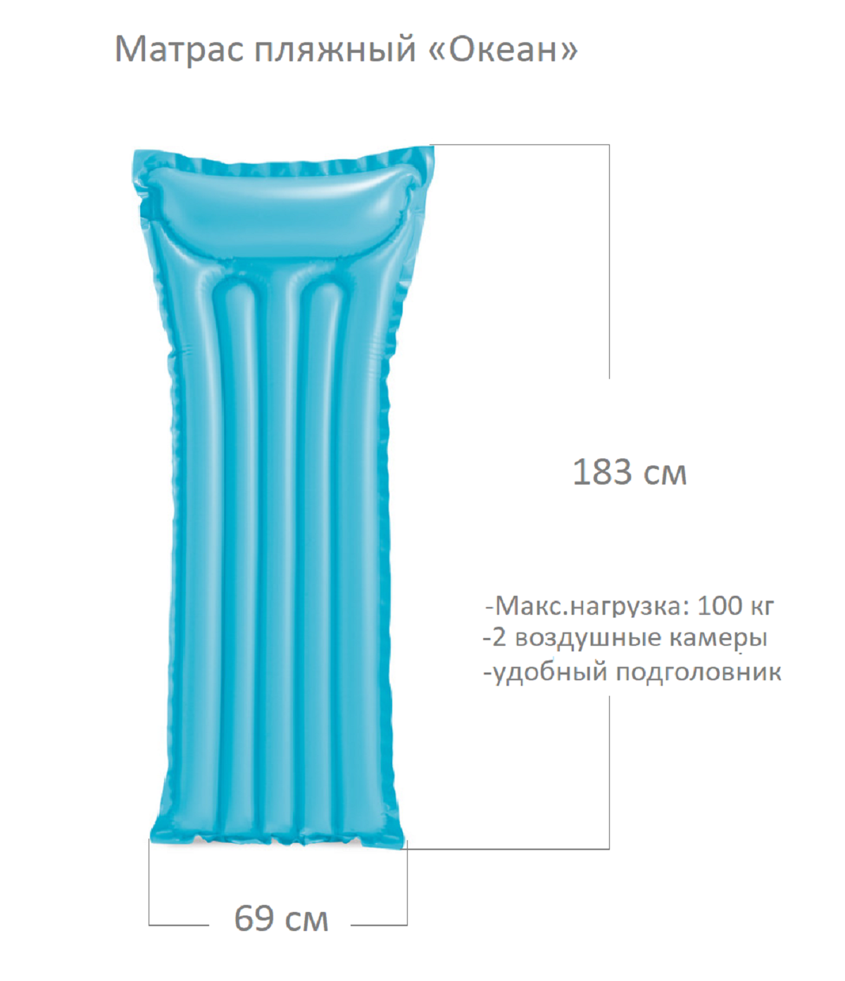 Матрас пляжный «Океан», 183х69 см, 59703NP INTEX, голубой, от 8 лет интересное: