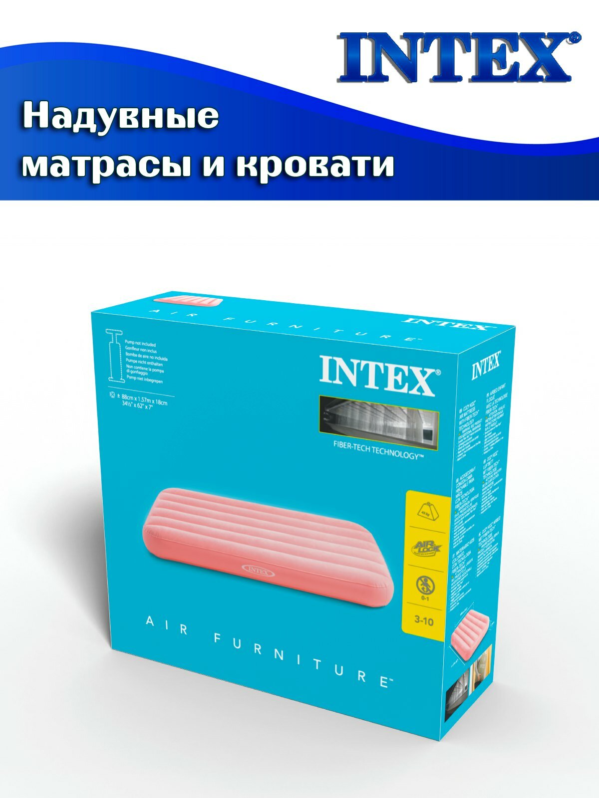 Кровать надувная детская INTEX 66803 COZY KIDZ, флок, цвет розовый, 157х88x18 см интересное: