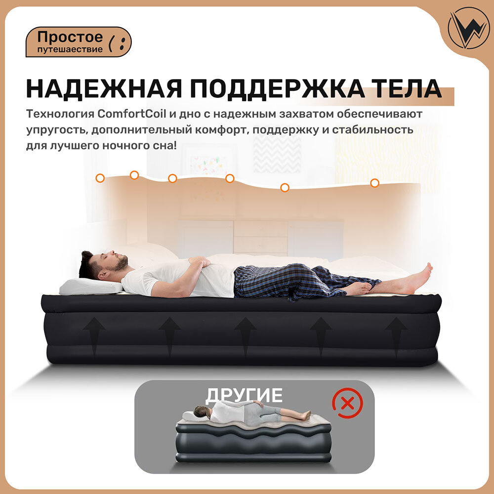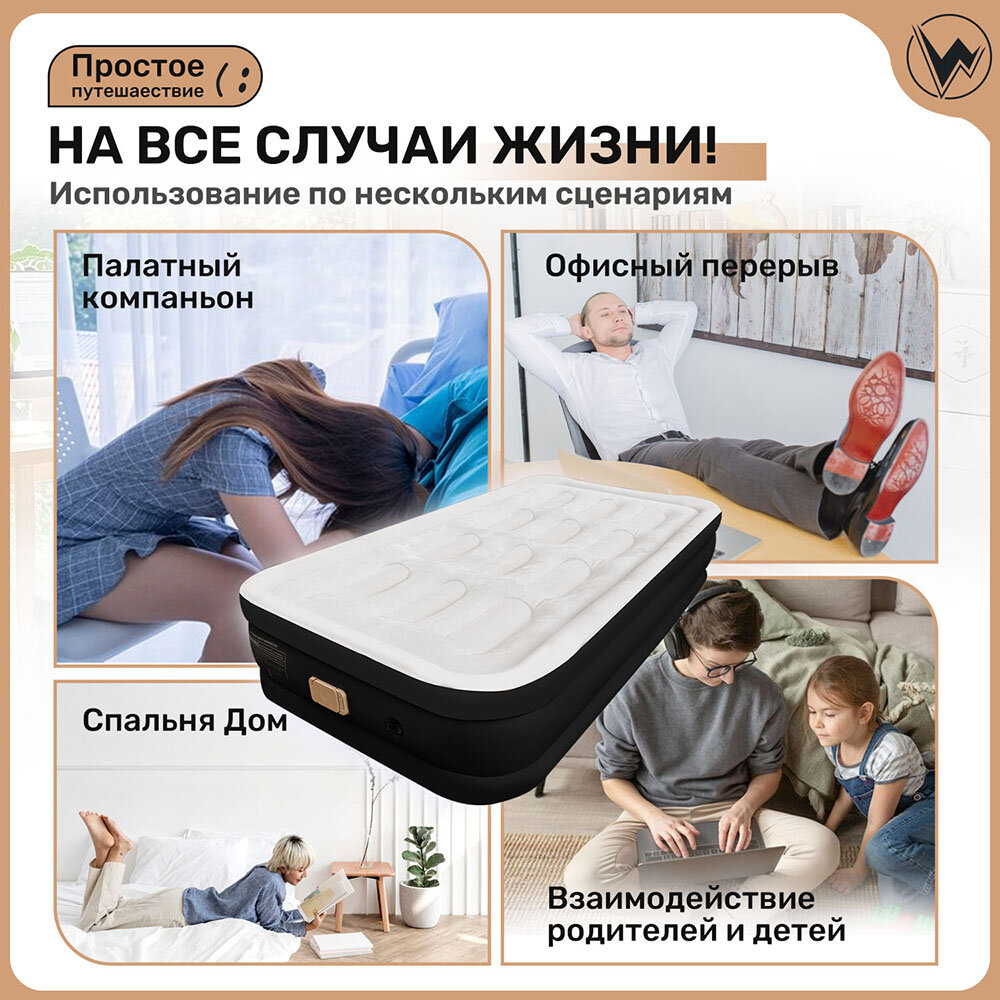 Матрас Надувной Односпальный С Насосом 190х100х40 Черное интересное: