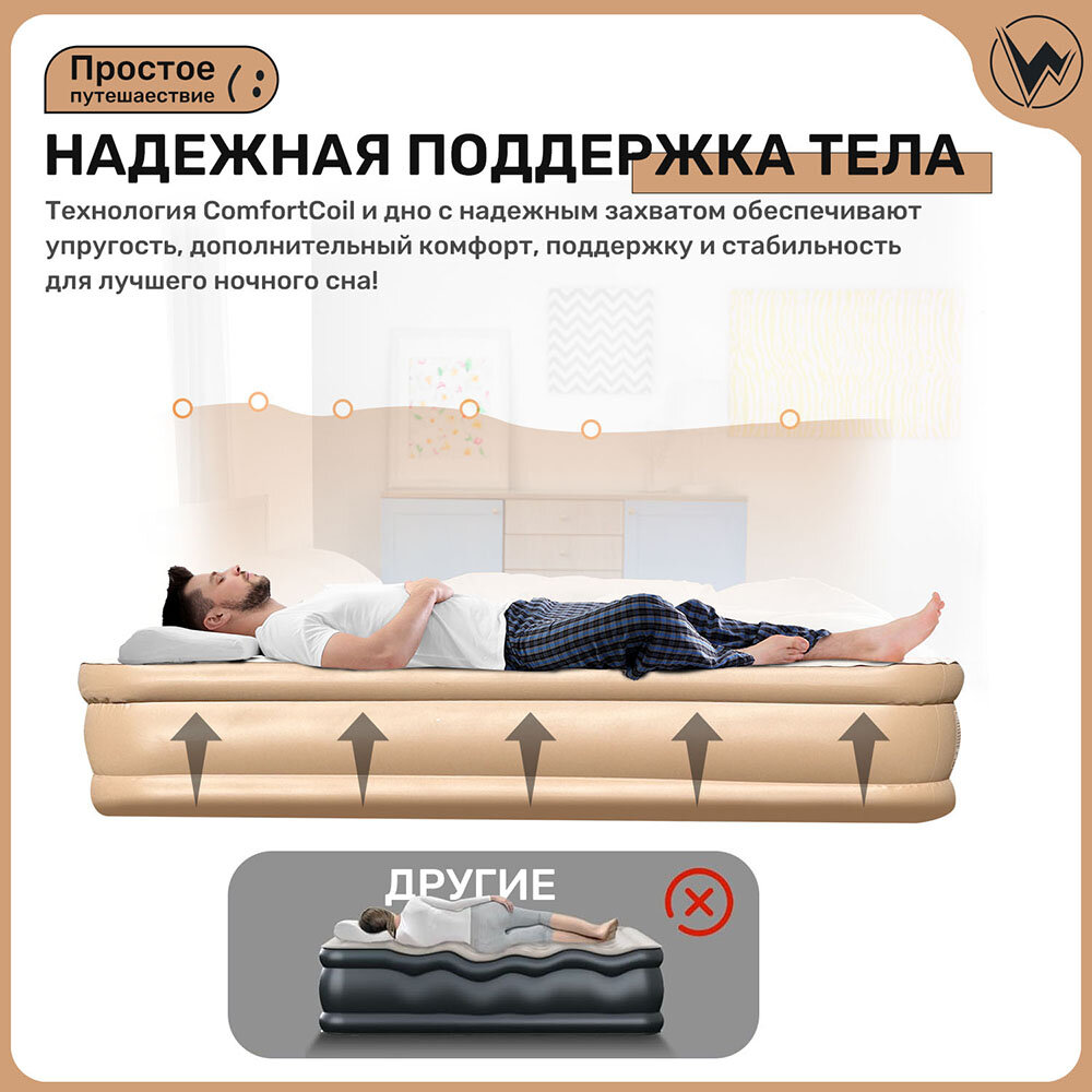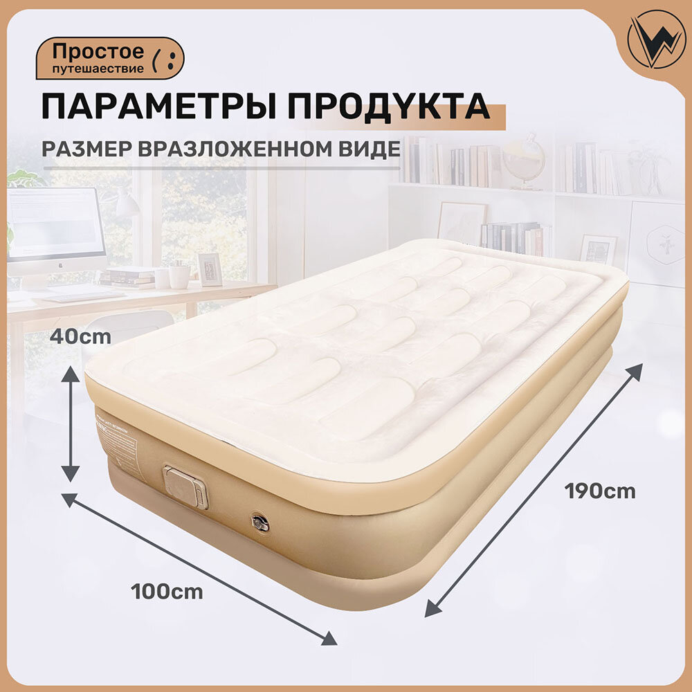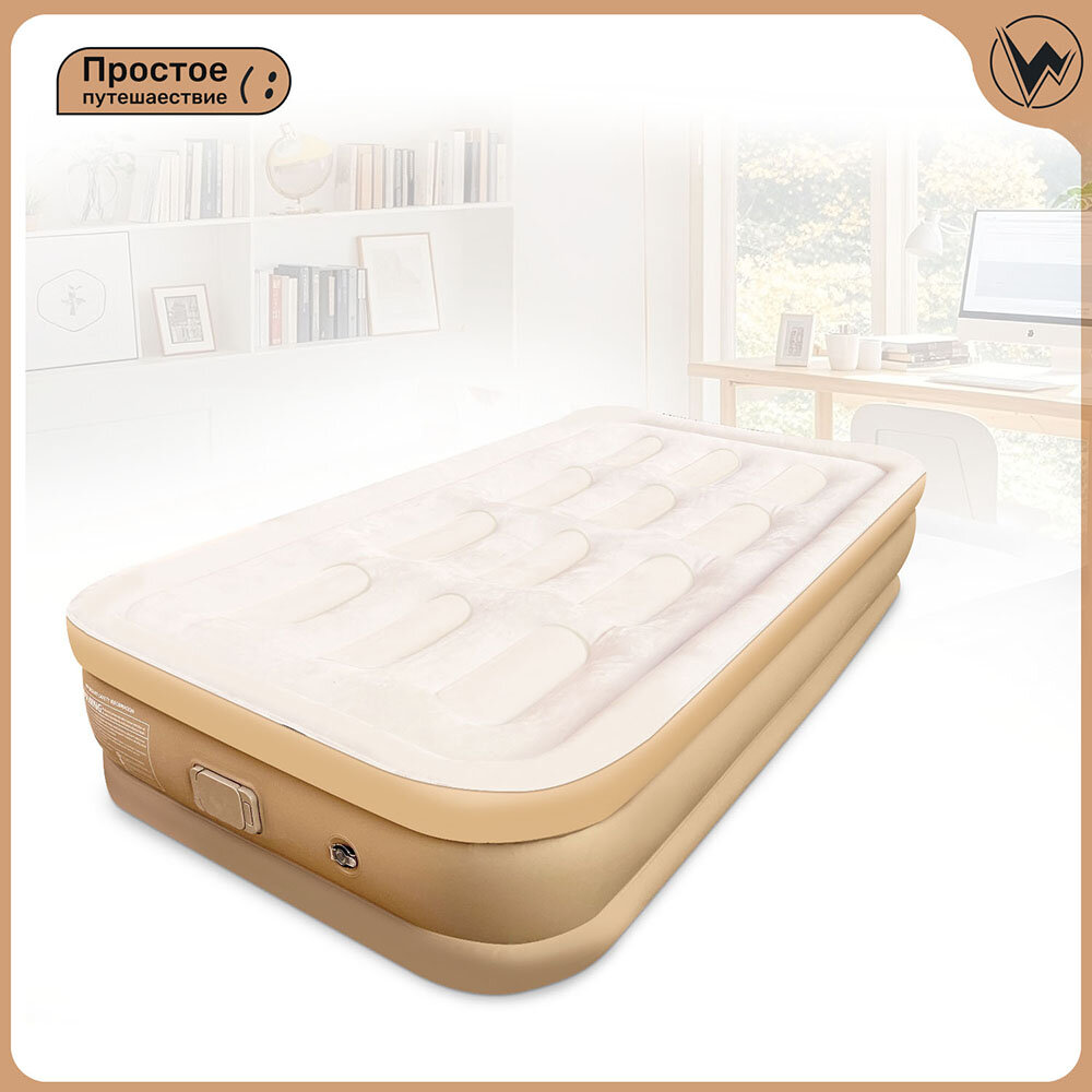 Матрас Надувной Односпальный С Насосом 190х100х40 Бежевый интересное: