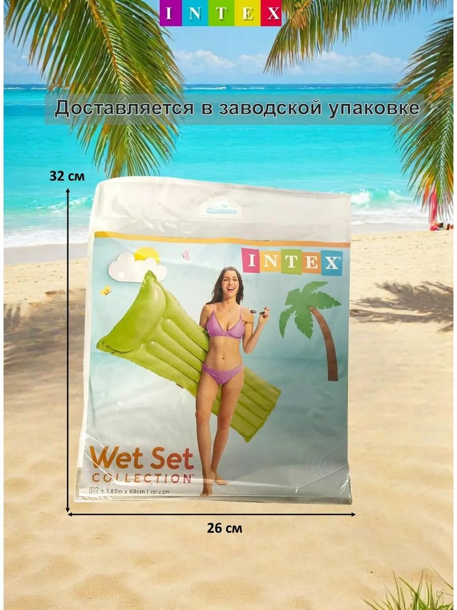 Intex Надувной матрас для плавания и купания с подголовником для бассейна и пляжа 183х69см, до 100кг зеленый 59703NP интересное: