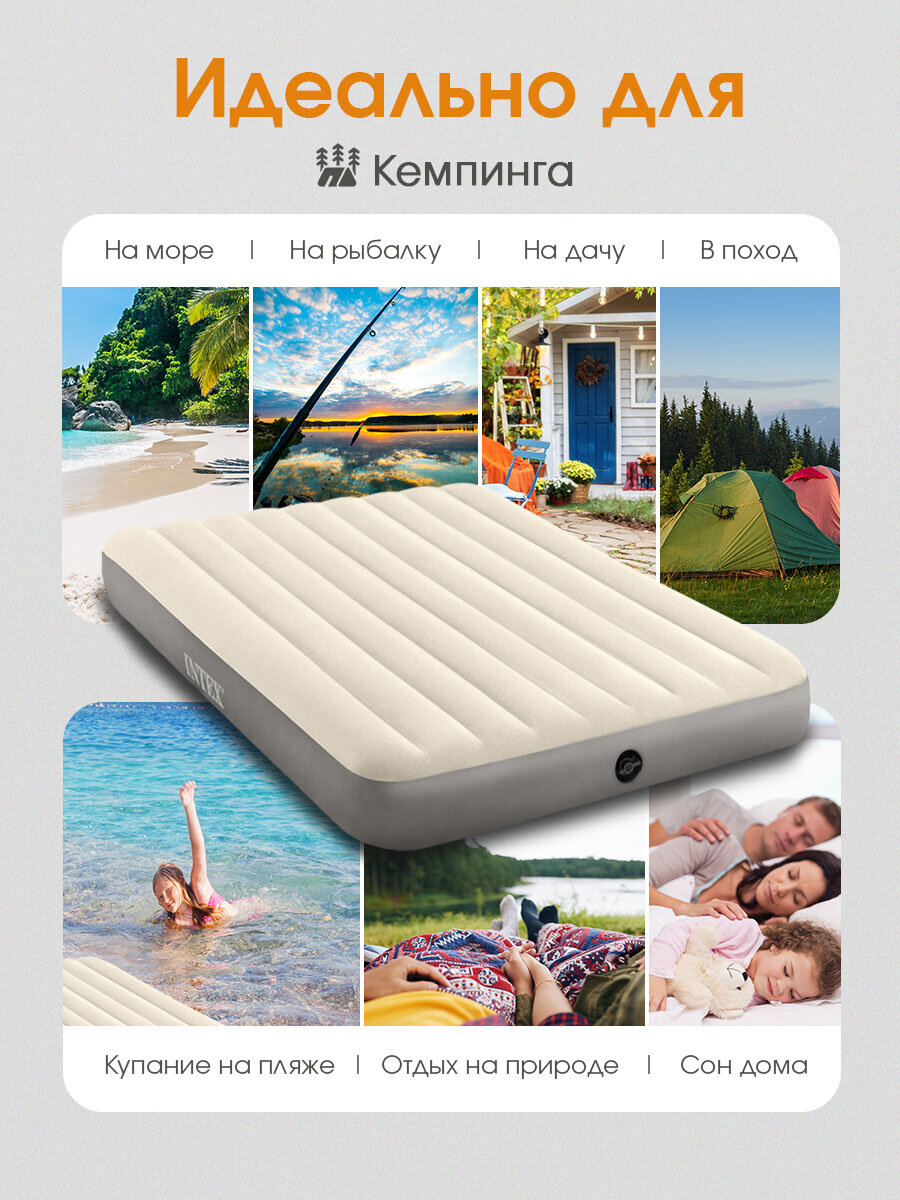 Матрас надувной Intex 203х152х25 см, двухместный, флокированный, бежевый интересное: