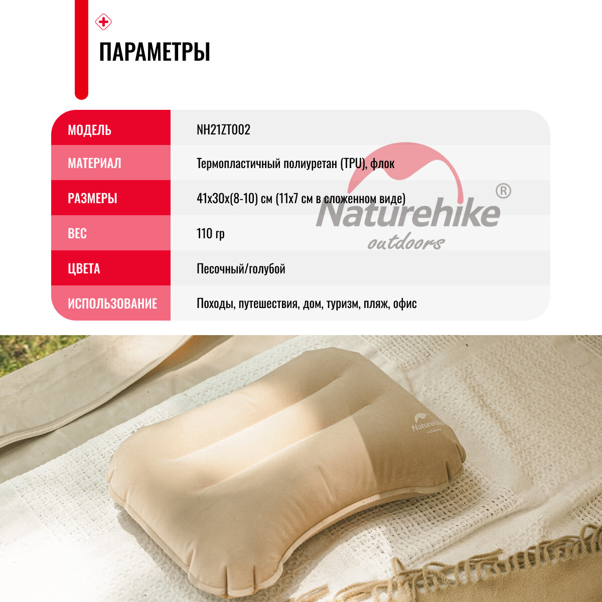Надувная подушка Naturehike PU flocking comfortable sleeping pillow NH21ZT002 интересное: