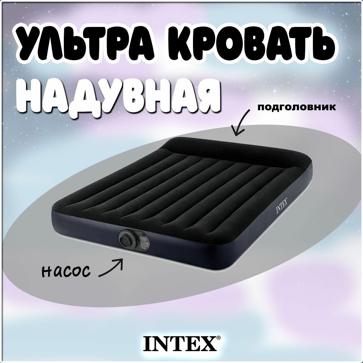 Матрас надувной Intex 64150 двуспальный с насосом интересное: