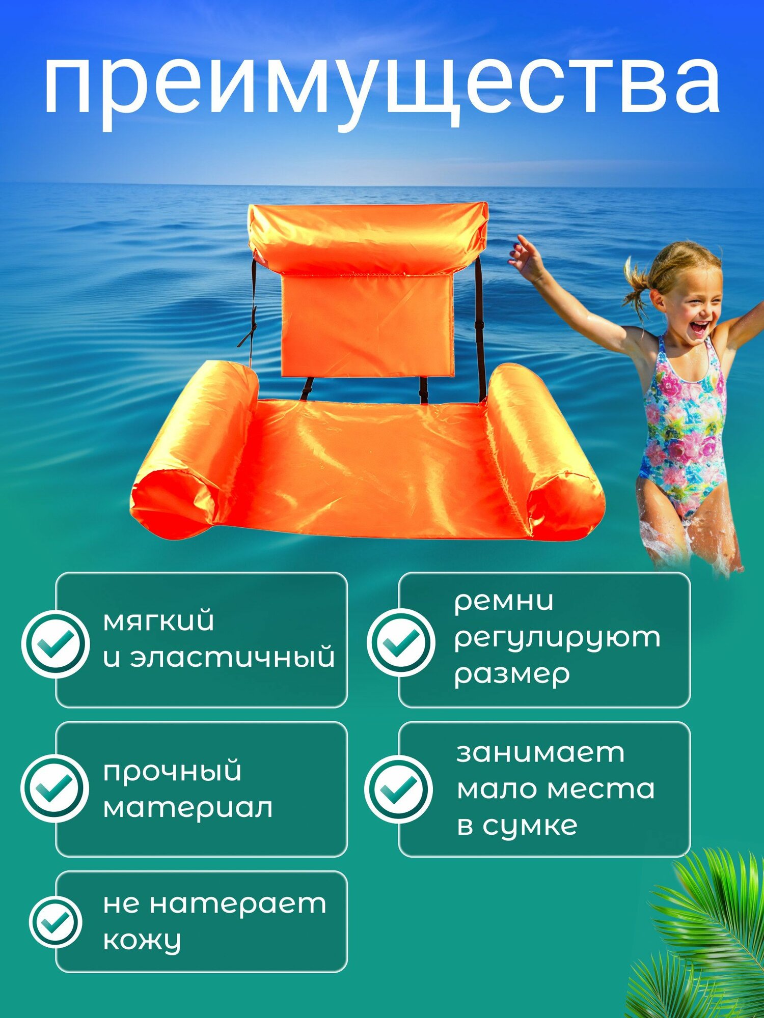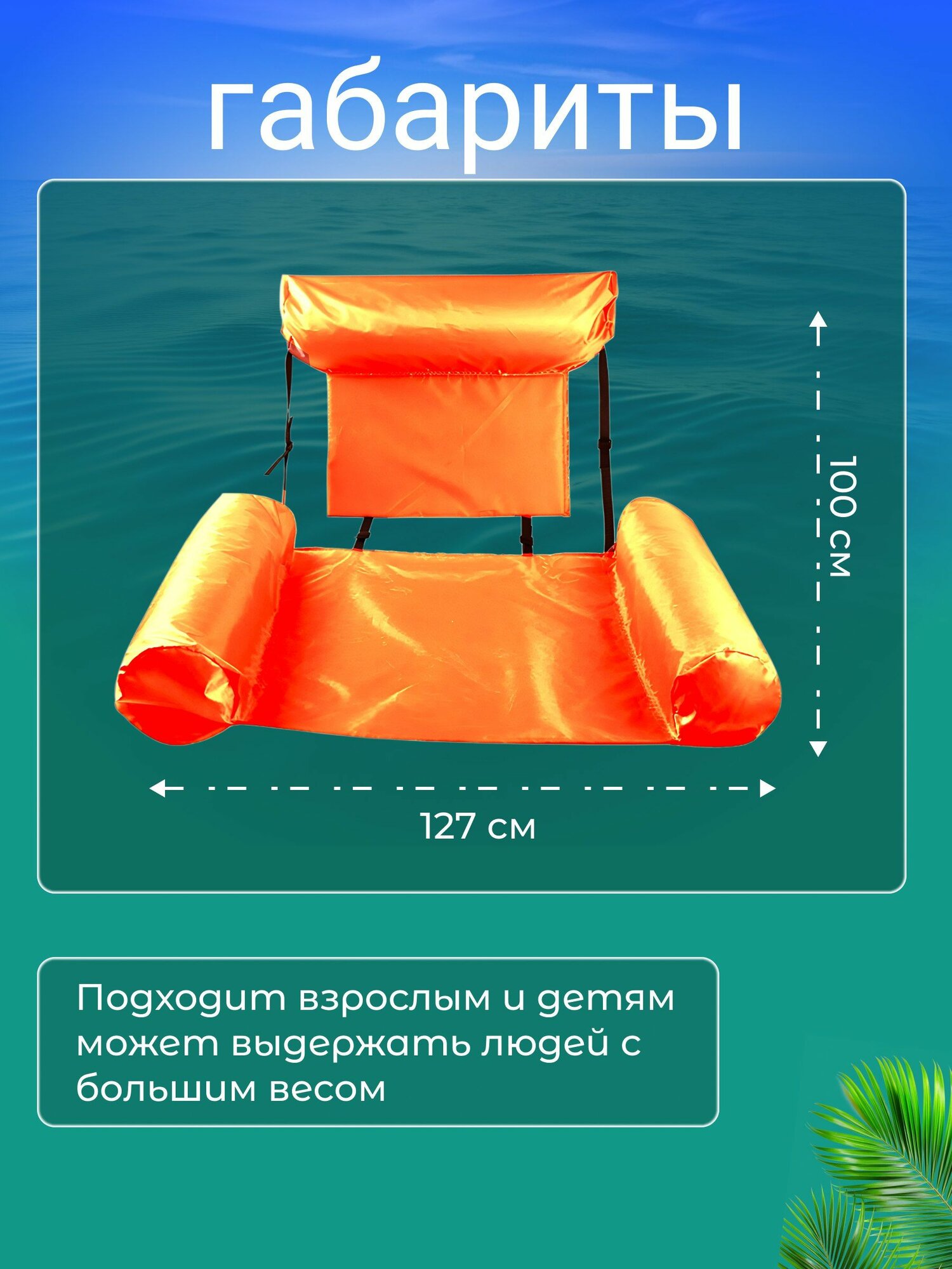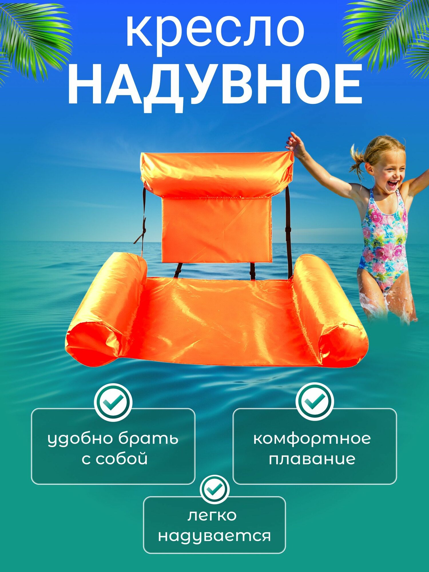 Надувной матрас шезлонг кресло для плавания с ремнями и поддержкой спины Inflatable Floating Bed оранжевый интересное:
