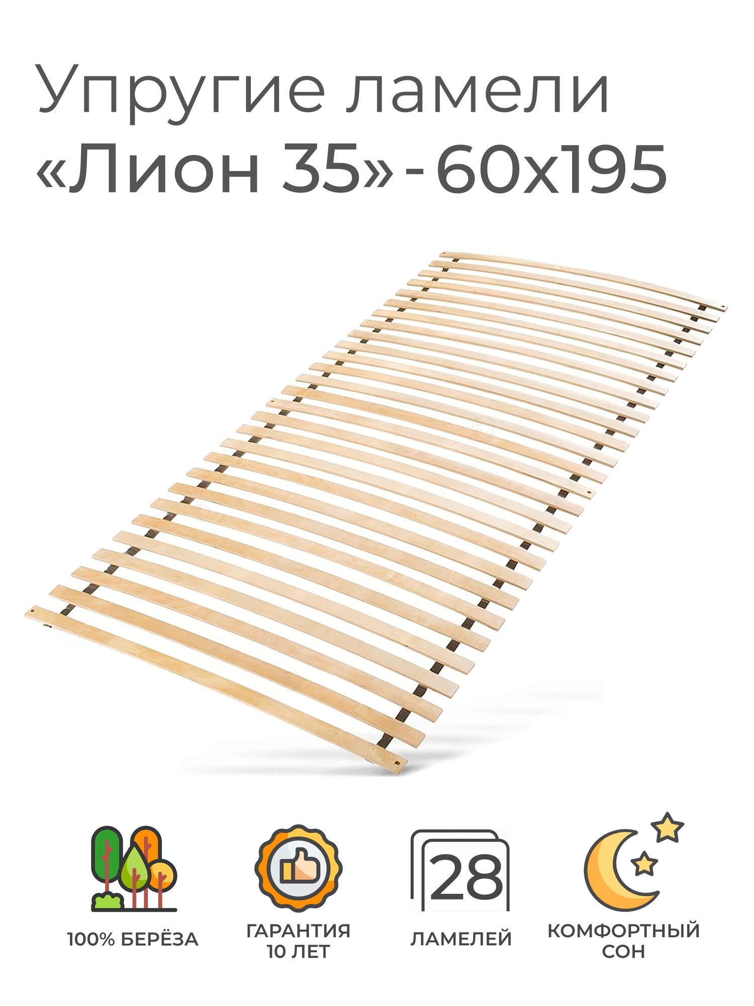 Упругие ламели "Лион 35", 80х200 (ортопедическое основание для кровати, ламели 800 мм, реечное дно, основа под матрас односпальной кровати)