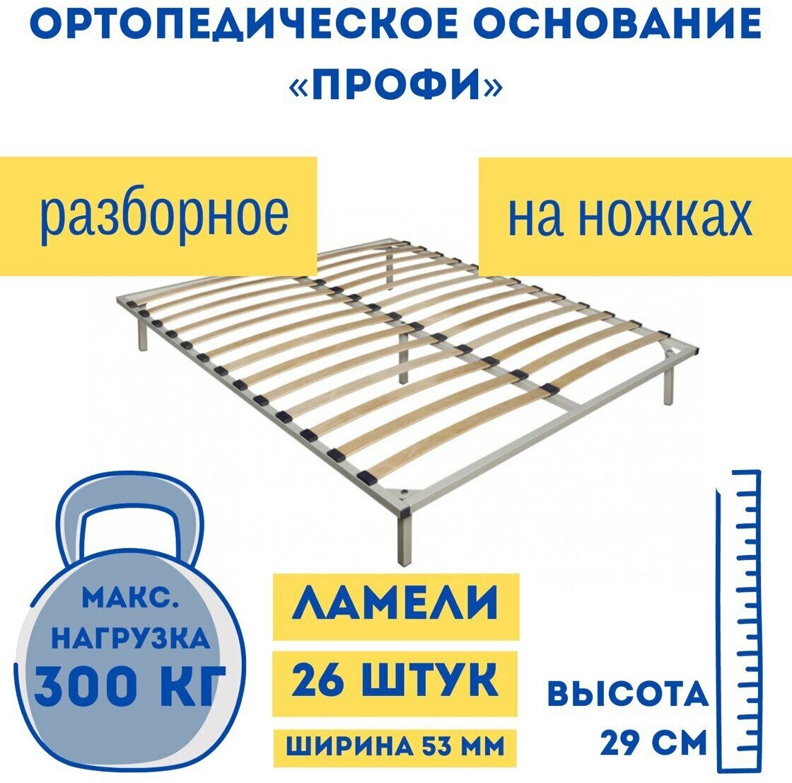 Ортопедическое основание «Профи» 160x200 см, разборное на ножках, Мелодия сна