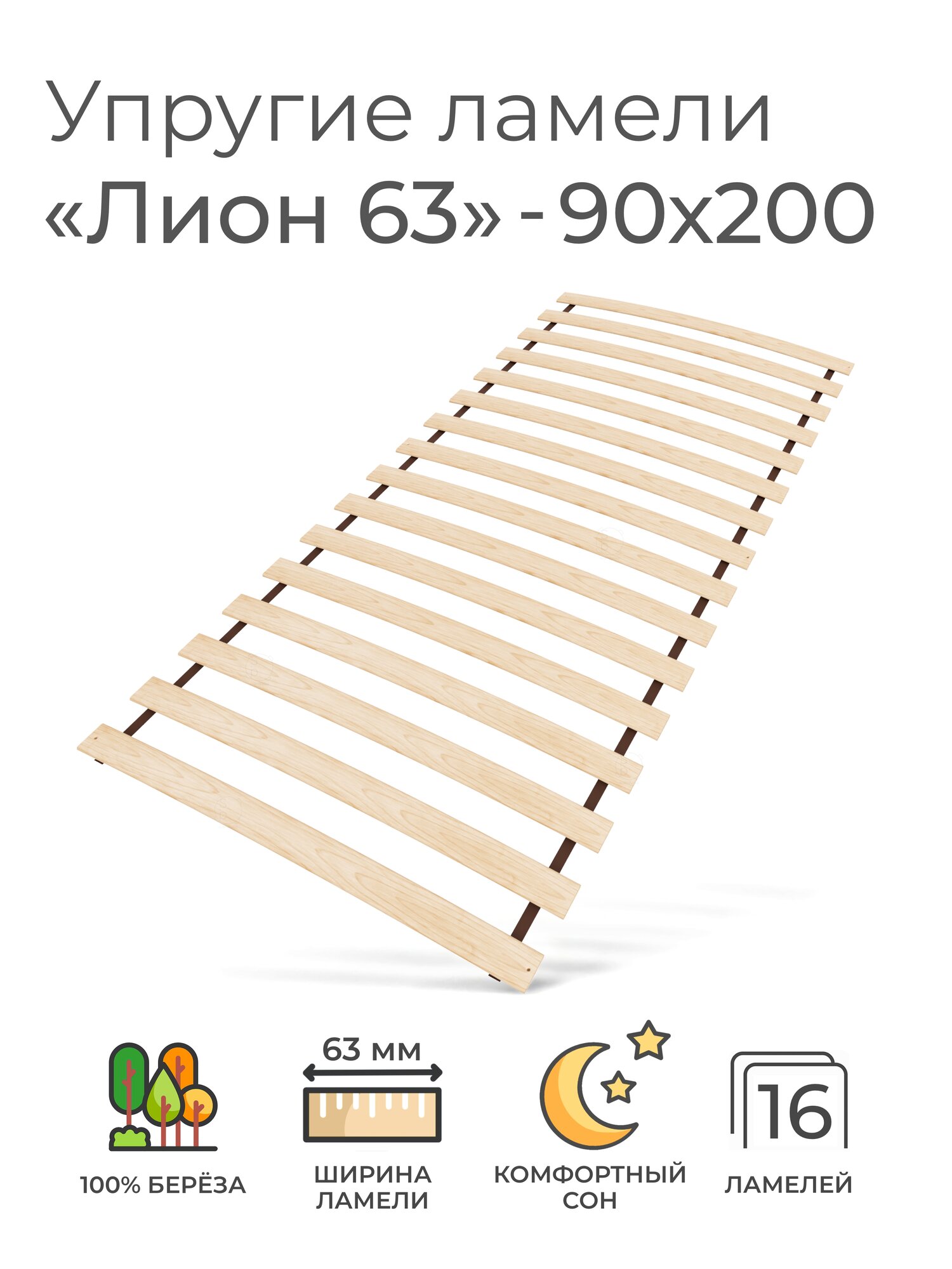Упругие ламели "Лион 63", 120х200 (ортопедическое основание для кровати, ламели 700 мм, реечное дно, основа под матрас односпальной кровати)