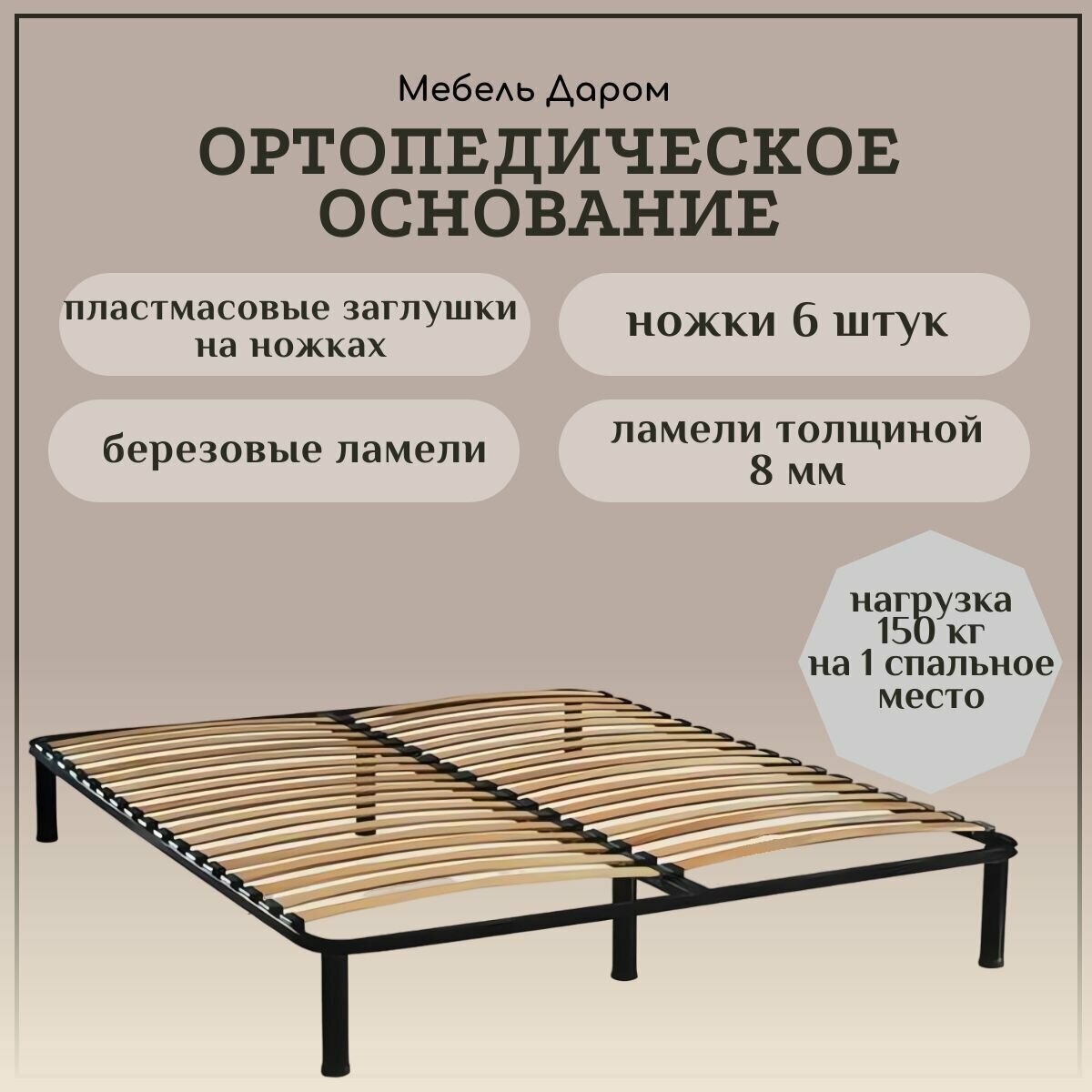 Ортопедическое основание 160х200 см для кровати неразборное усиленное на ножках