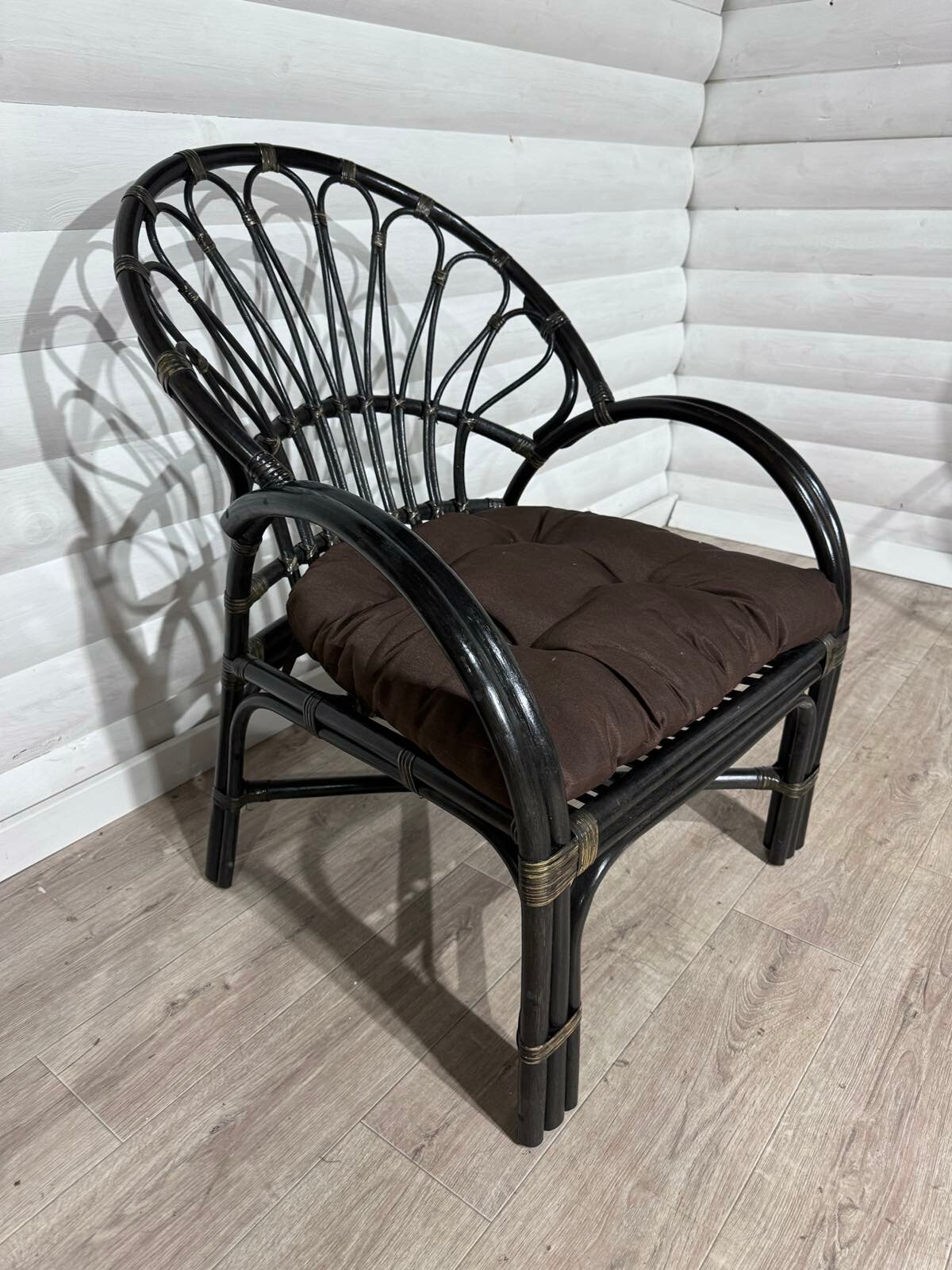 Кресло Бонжур из натурального ротанга кофе, подушка коричневая