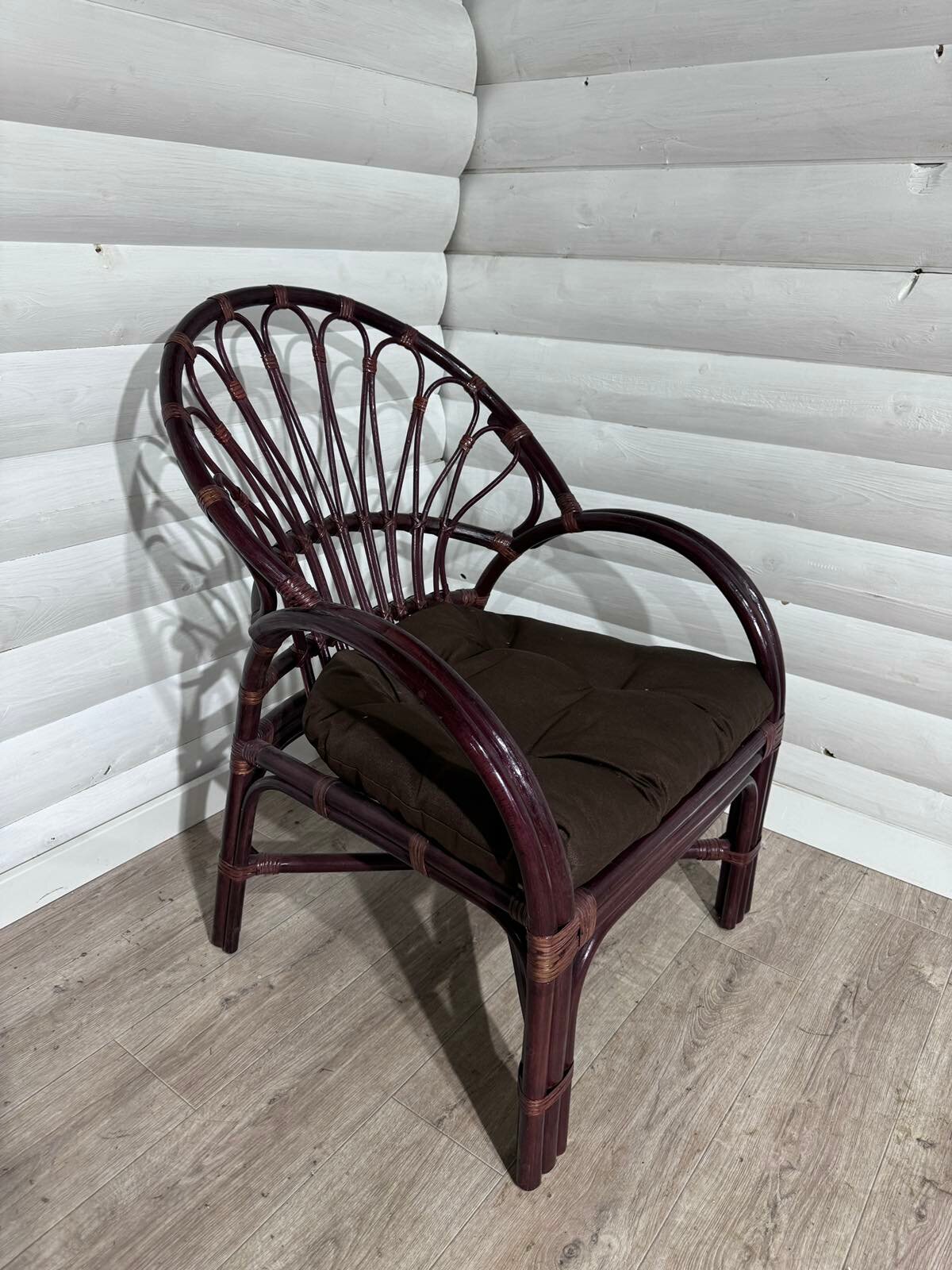 Кресло Бонжур из натурального ротанга красное дерево, подушка коричневая интересное: